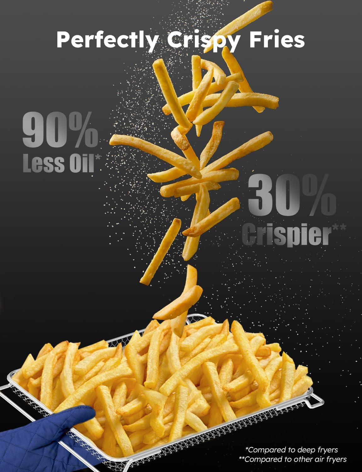 - Special Feature : 2025 Full-Improved; Improved 100% Fan Speed, Crispier Results; 12 Cooking Functions, 100 One-touch Presets; 30QT XL Large Capacity, 4 Adjustable Rack; Upper and Lower Heaters Adustable From 0-100%; 3 Selectable Fan Speed; 50-500℉, 0-100Hours;, 3X Faster Cooking, 90% Less Oil; 10 Toast Settings, 5-Stage Cooking, 3 Sear Modes; Linear T™ Heat Tech; Carrying-over Cooking Function; Auto Preheat; Auto Shut Off; Delay and Warm Function; Mute/Unmute; Panel Lock; Clock Function; Super-Speed and Quiet Fan; 7 Cook Accessories; Easy to Use and Clean 2025 Full-Improved; Improved 100% Fan Speed, Crispier Results; 12 Cooking Functions, 100 One-touch Presets; 30QT XL Large Capacity, 4 Adjustable Rack; Upper and L… See more