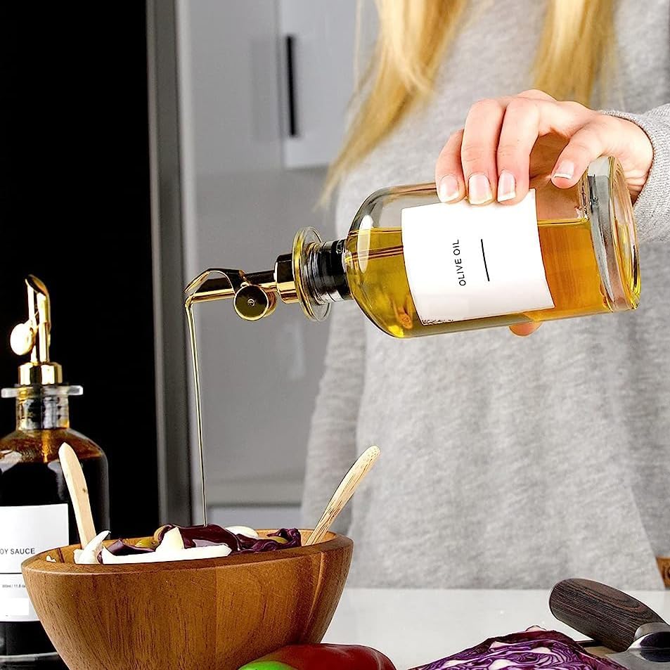- Keep Oils and Coffee Syrup Fresh: High-quality metals oil dispenser keep oils fresher for longer than ever before. automatic oil spout suitable for most classic glass bottle necks, such as wine bottles, whiskey bottles, olive oil bottles,syrup bottles and other sealing bottle. gold pour spouts for liquor bottles are the most popular essential tools in home, kitchen, restaurants, bar accessories, coffee bar accessories.