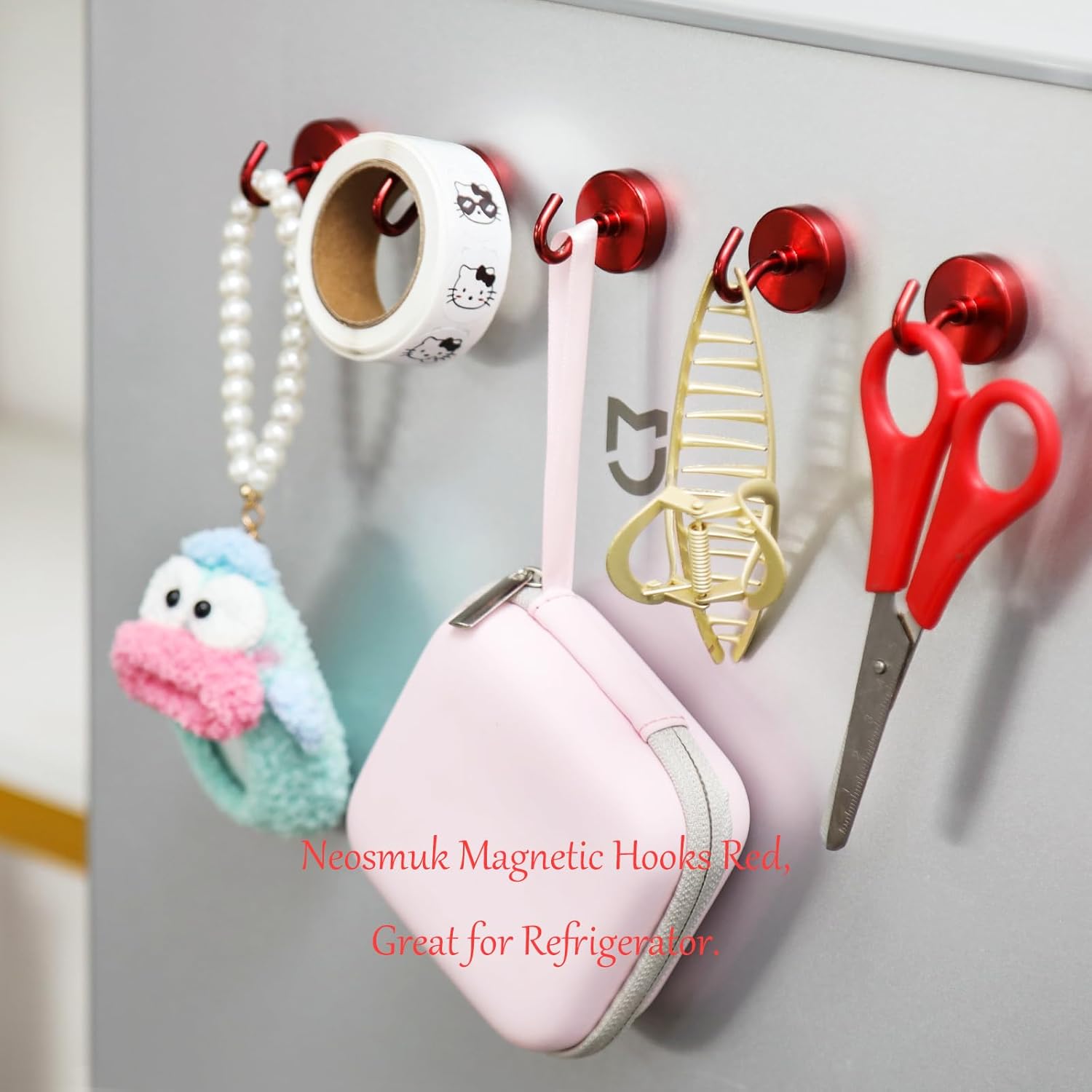 Neosmuk Magnetic Hooks Heavy Duty,Strong Magnet with Hook for Fridge, Super Neodymium Extra Strength Industrial Hooks for Hanging, Magnetic Hanger for Toolbox, Cruise, Grill(Red,10 Pack)