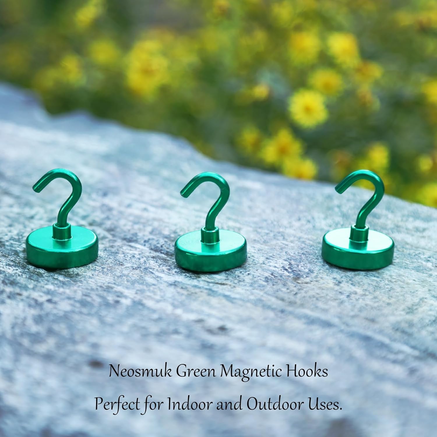 Neosmuk Magnetic Hooks Heavy Duty,Strong Magnet with Hook for Fridge, Super Neodymium Extra Strength Industrial Hooks for Hanging, Magnetic Hanger for Toolbox, Cruise, Grill(Green,10 Pack)