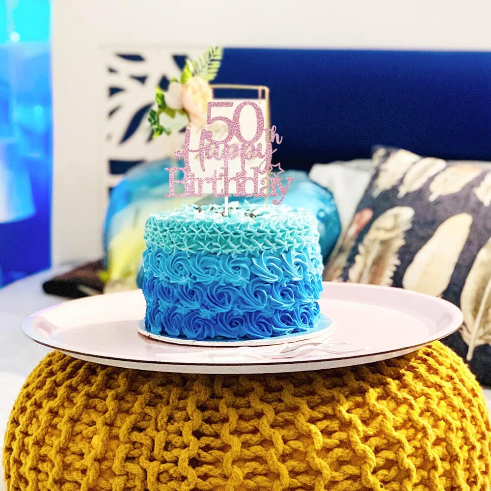 Glittery 50th Happy Birthday Cake Topper with Star,Personalised 50 Birthday Cake Toppers Party Decorations Party Supplies for Men Women Rose Gold