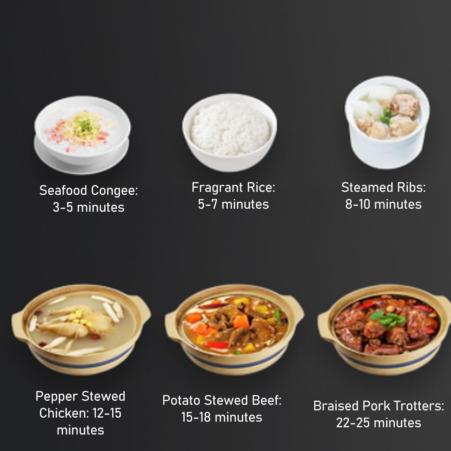 - 【Efficient Fast Cooking】: 80kpa High pressure stewing, energy saving, time saving, and rapid flavor infusion. The pressure cooker cooks food at higher pressure, raising the boiling point of water and speeding up the cooking process. It can be used on both induction cookers and open flame stoves. It heats up quickly and can be used for various cooking purposes.