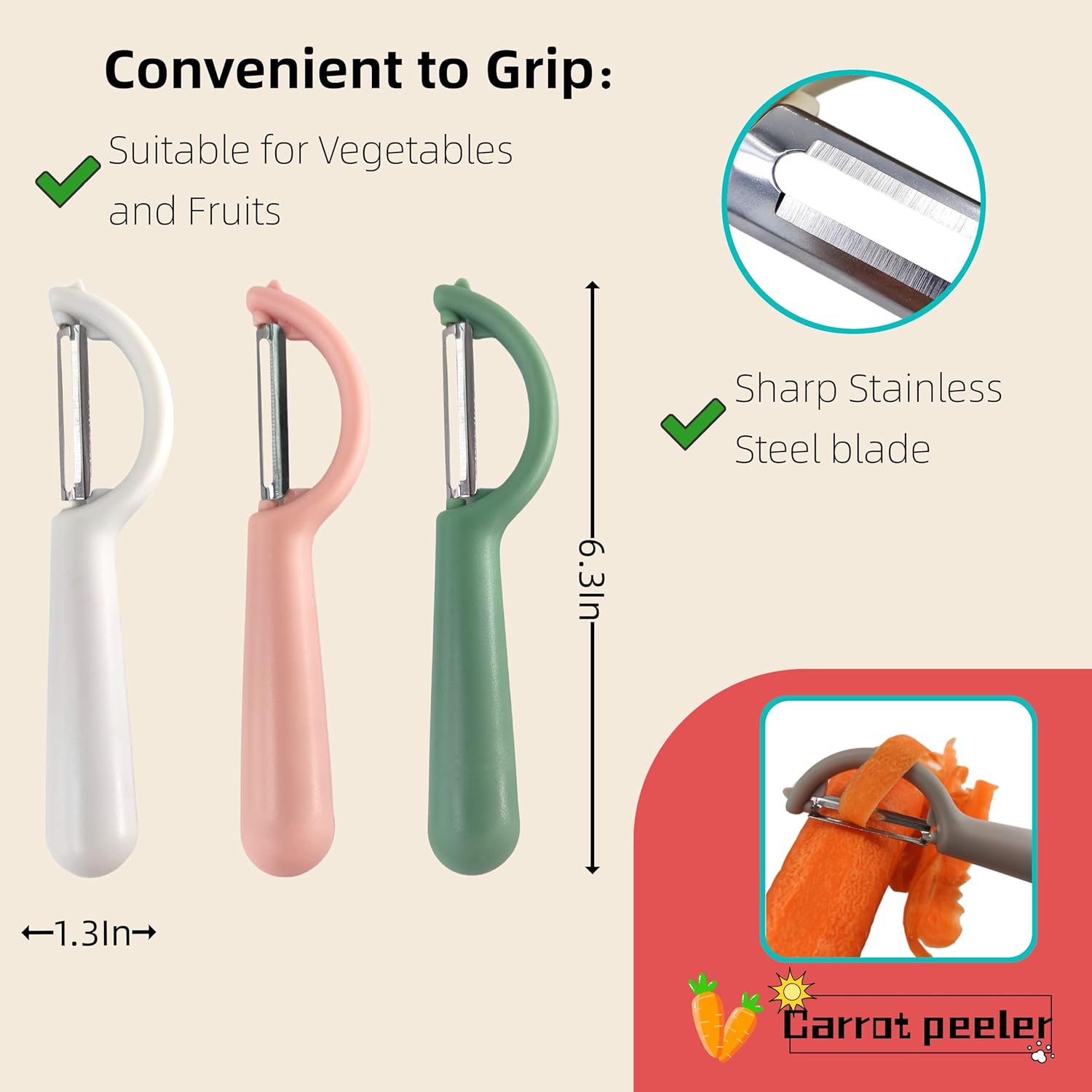 - 🥔【Non-Slip & Ergonomic Design】This veggie peeler has a non-slip handle and won't slip in wet conditions. The handle is large and easy to grip, efficient and lightweight, comfortable to use for both right and left hand operation, even for people with arthritis.