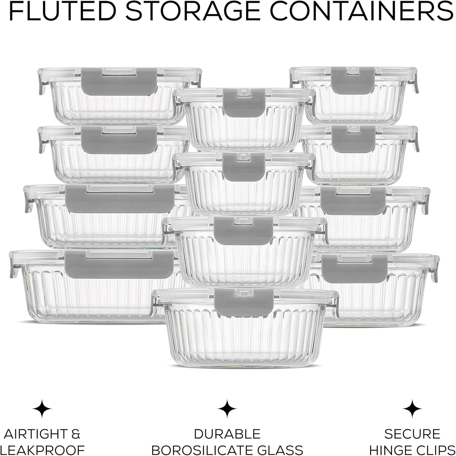 • FLUTED GLASS FOOD STORAGE CONTAINERS FOR EVERYTHING: Prep, stash, stack, store, and more with our charming, fluted glass meal prep containers! BPA-free, they go from freezer to oven without breaking. With a variety of shapes and sizes, these glass containers handle it all.