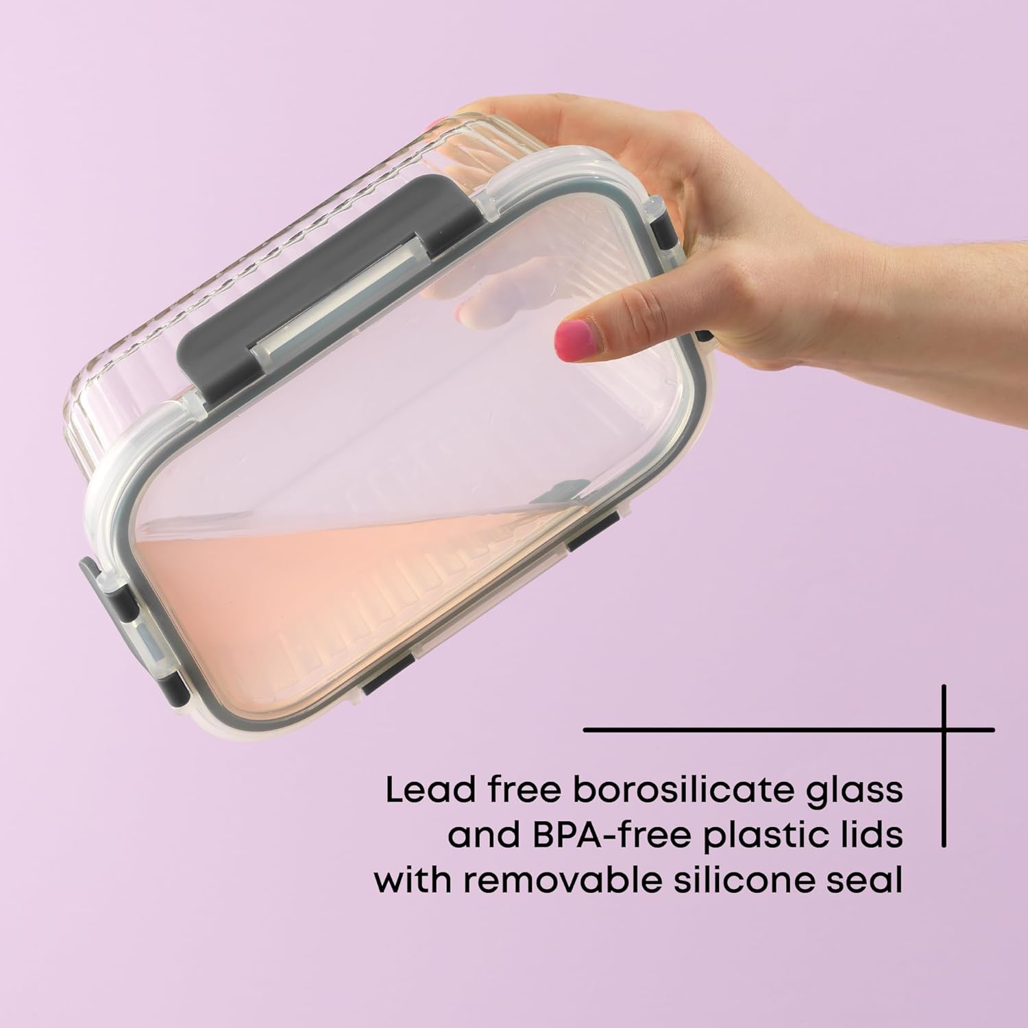 • AIRTIGHT FRESHNESS: These airtight containers feature a removable silicone seal and secure hinge clips, so you can use them as a food container without odors or air getting in or out! They're also leakproof glass lunch containers, so fill them as soup containers in your lunch bag without fear!
