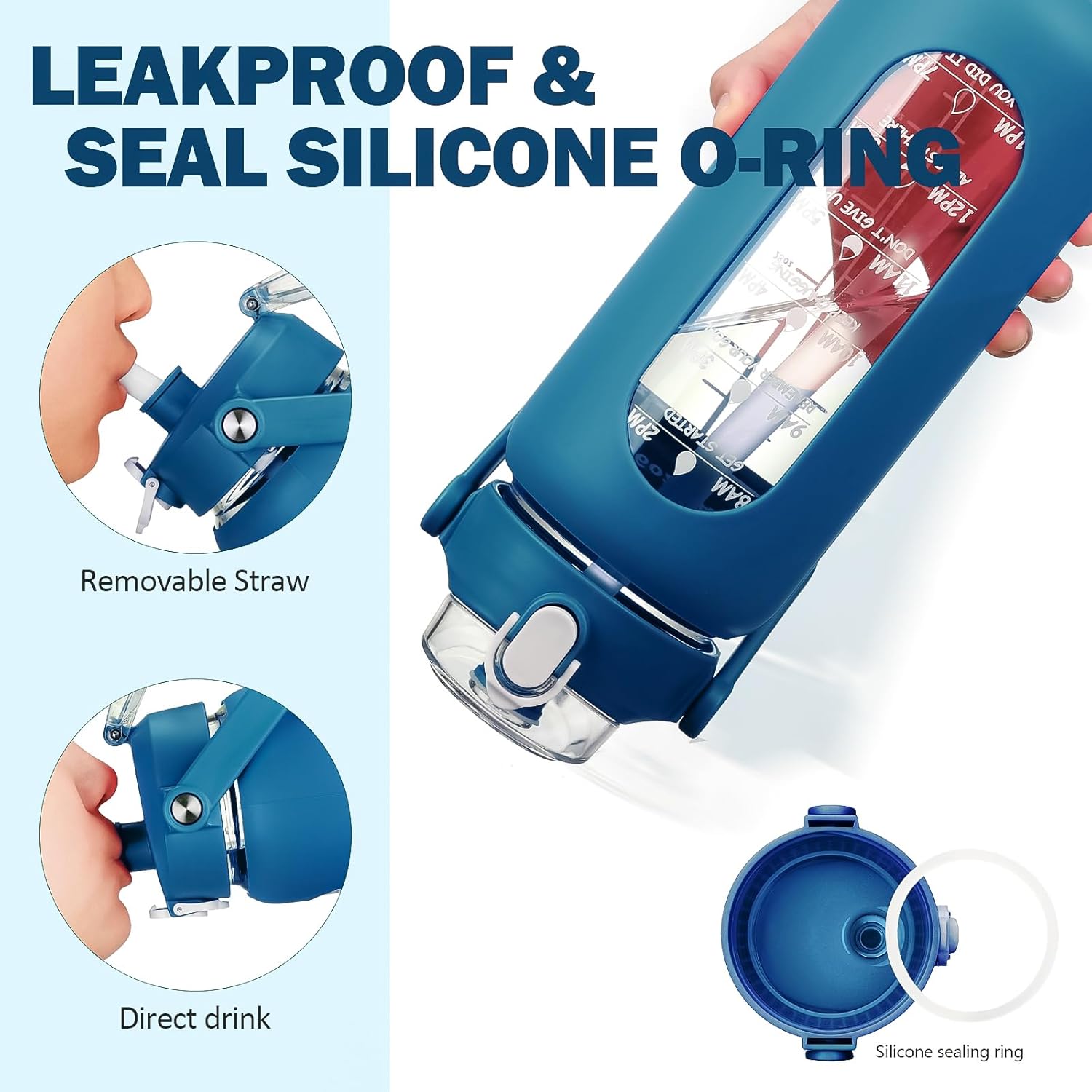- ❤High-Quality Borosilicate Glass Bottle- This large motivationla water bottle is made of odorless, quality, borosilicate glass. Straw and lid are made of food-grade PP, BPA-free and eco-friendly.