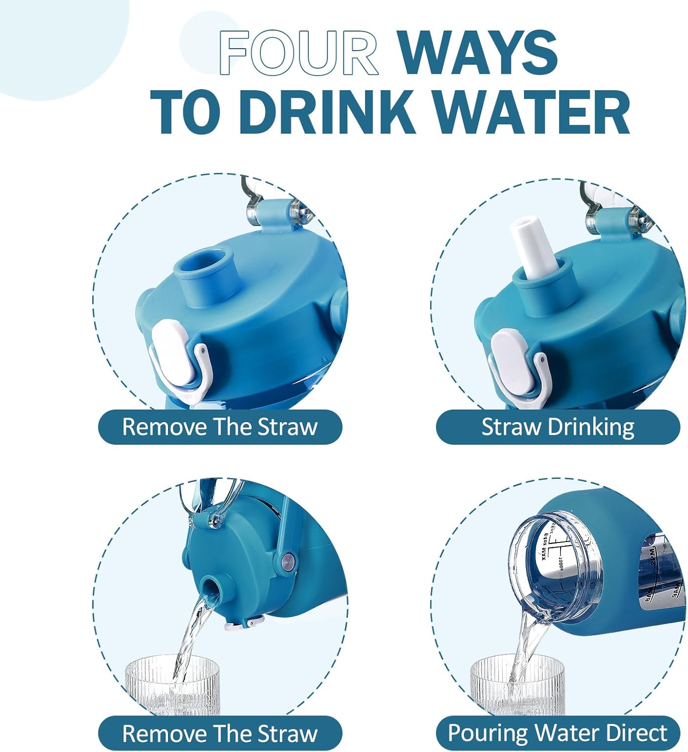 - ❤Glass Water Bottle with Pop-up Straw Lid- Our 64oz water bottle with straw is designed with an upgraded lid that ensures 100% leakproof and dustproof. Advanced one-click button makes you drink easier, just push the button and the straw will pop out automatically.