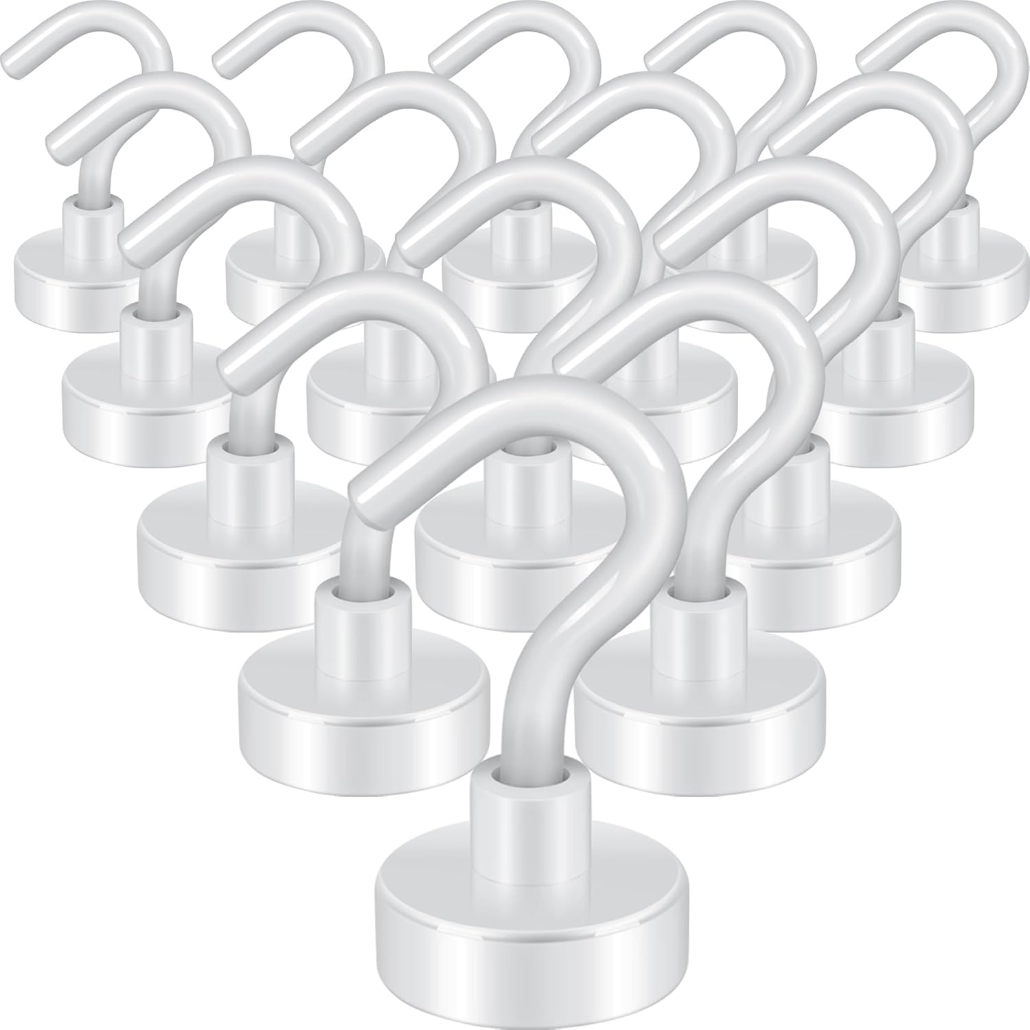 Neosmuk Magnetic Hooks,30lb+ Heavy Duty Earth Magnets with Hook for Refrigerator, Extra Strong Cruise Hook for Hanging, Magnetic Hanger for Curtain, Grill (Creamwhite, 15 Pack)