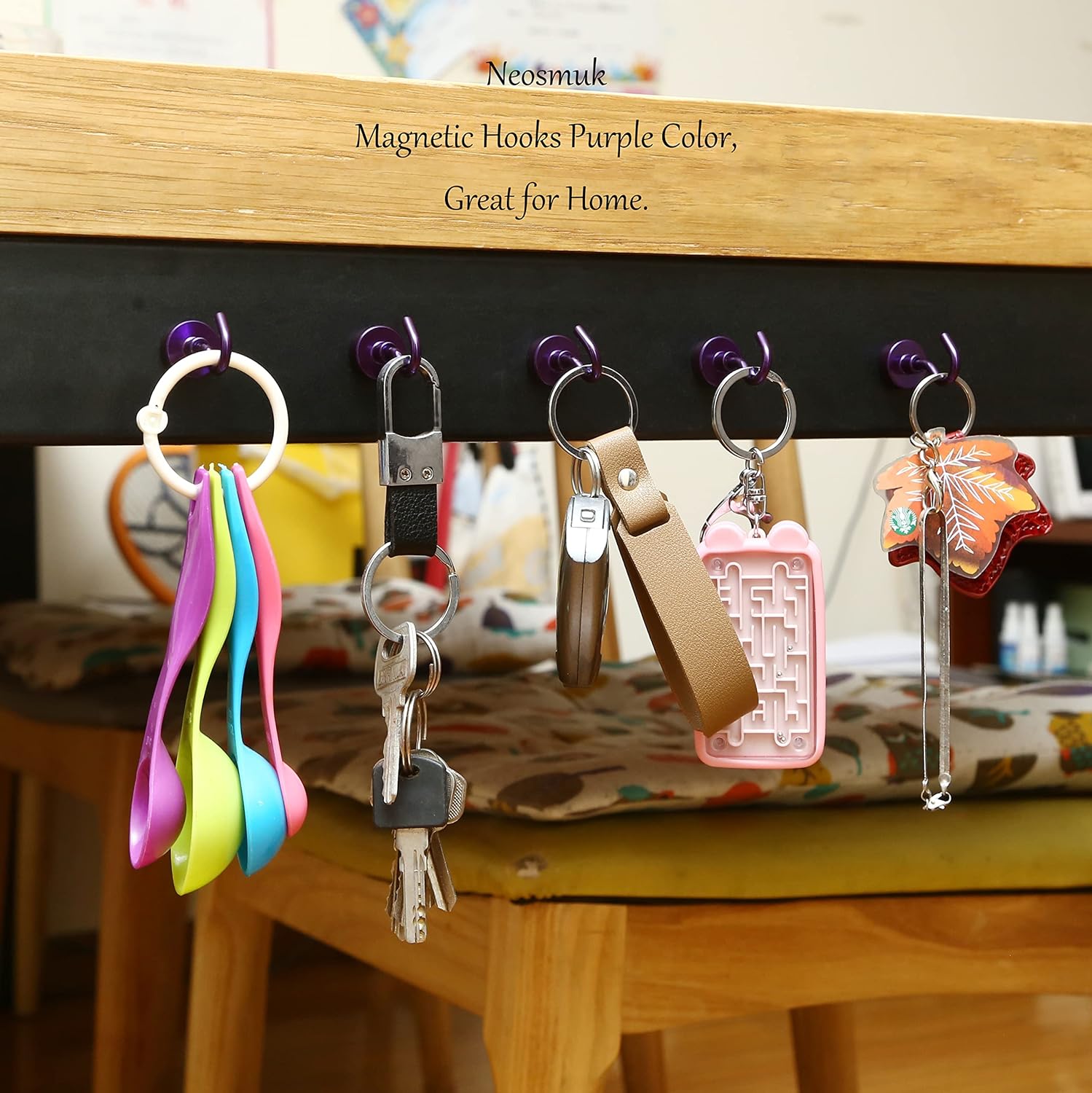 Neosmuk Magnetic Hooks,30lb+ Heavy Duty Earth Magnets with Hook for Refrigerator, Extra Strong Cruise Hook for Hanging, Magnetic Hanger for Curtain, Grill (Purple, 15 Pack)