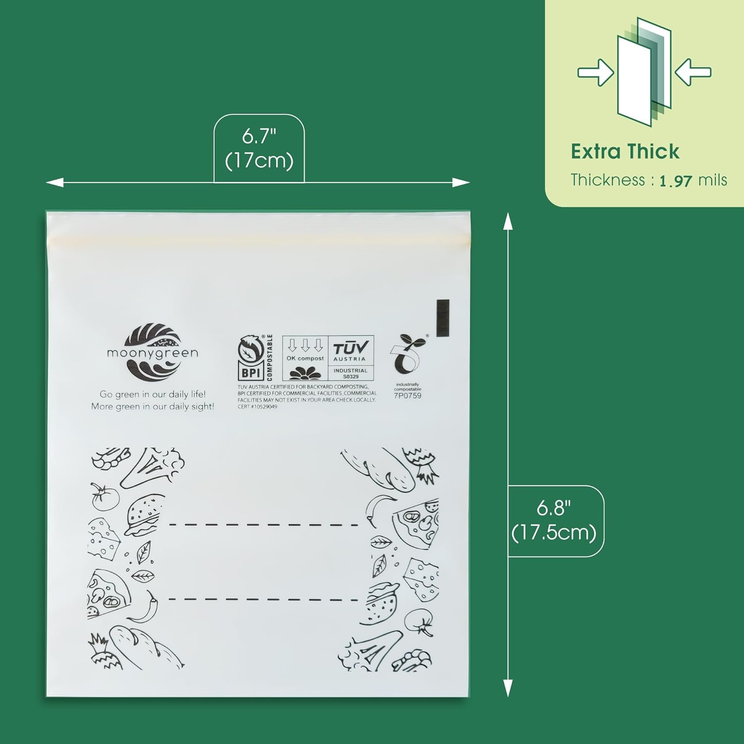 - š± Moonygreen Resealable Sandwich bags have acquired the highest-rated ASTM D6400, European standard EN 13432 and BPI certified, proving that the bags are compostable with industrial facilities.