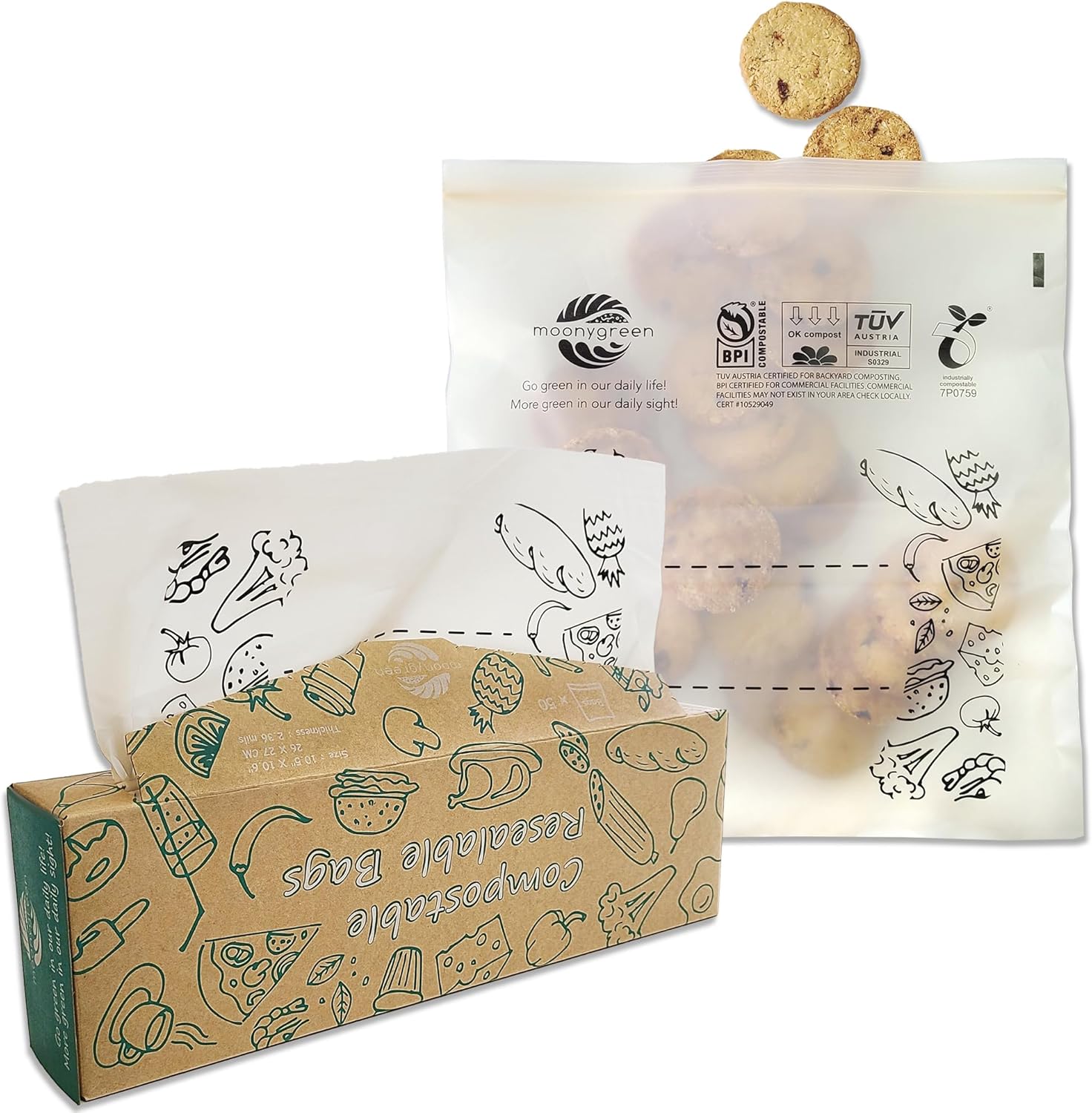 - š± Moonygreen Resealable Food Storage bags have acquired the highest-rated ASTM D6400, European standard EN 13432 and BPI certified, proving that the bags are compostable with industrial facilities.