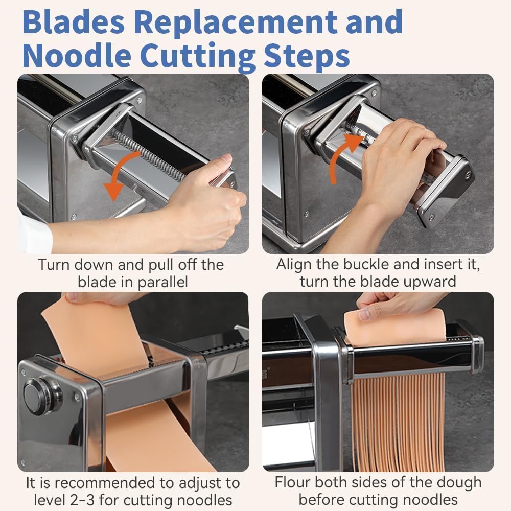 - 【Multifunctional Combination】One main unit is equipped with two different knife heads, corresponding to noodles with widths of 2mm and 6.5mm respectively. At the same time, there are seven thickness options. From noodles and wonton wrappers to pasta and dumpling wrappers, and then to thin pancakes, one machine can easily handle the production of various pasta, making your kitchen life rich and colorful.