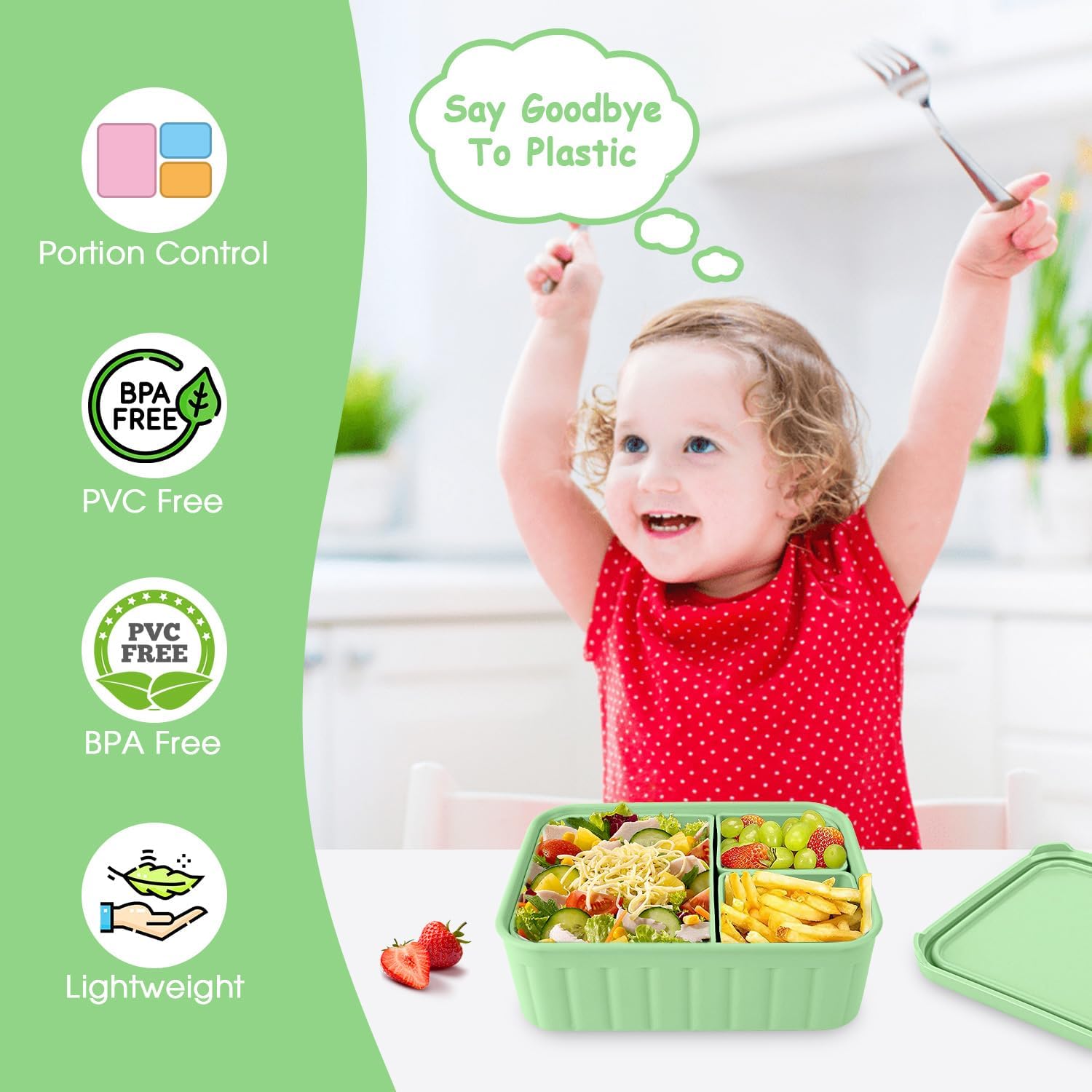- 【Say Goodbye to Mess】The silicone bento box lunchbox for Kids has individual compartment to keep food neat and separate. The leak proof silicone lids seal tightly around the lip of the container and ensure that the box remains tightly sealed during transport, preventing any spills or accidents. Easy to open and close for little fingers. Meanwhile,anti-slip design make the silicone bento box more safe
