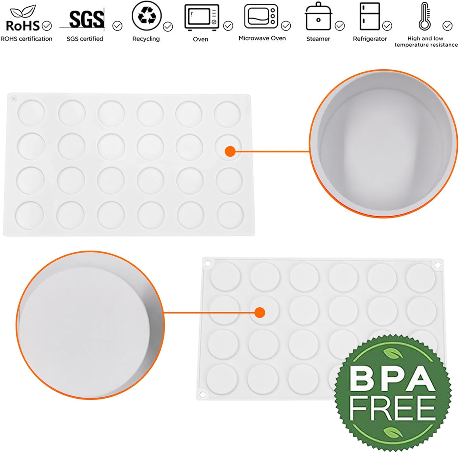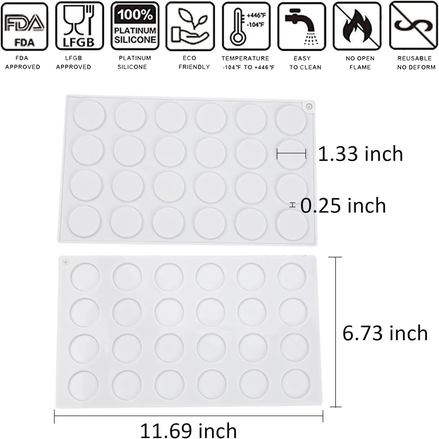 - SAFETY AND DURABLE - All Silicone molds are made of 100% food-grade silicone. And wide heat temperature range is -76℉ to 446℉. Excellent durability, these silicone baking molds can repeatedly use 3500times, not out of shapes. our molds can also be cleaned in the dishwasher