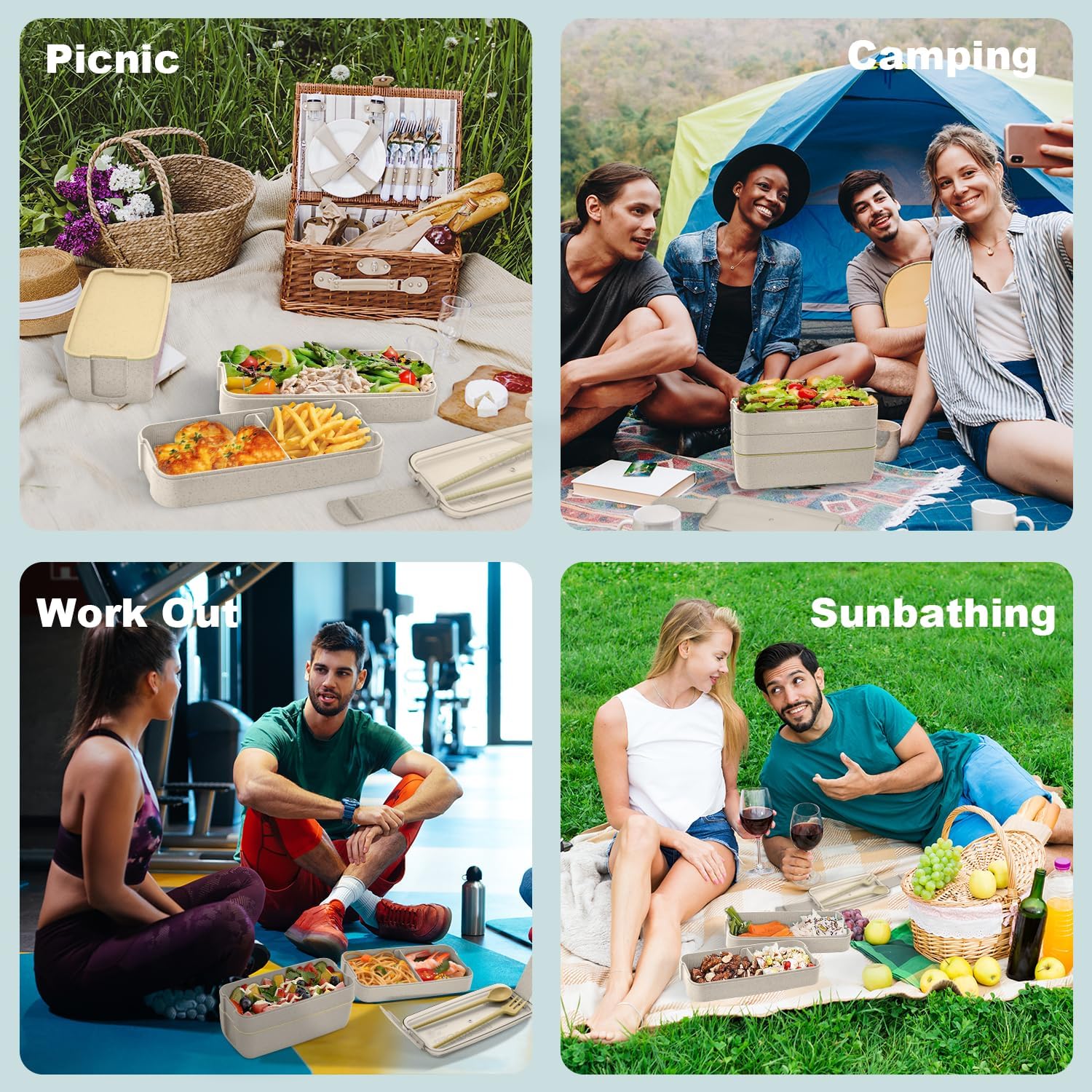 - BPA FREE WHEAT STALK MATERIAL: reusable, eco-friendly, food-grade PP material bento adult box container for food prep. Worry-free to use it to carry food to office or when traveling, camping and working out