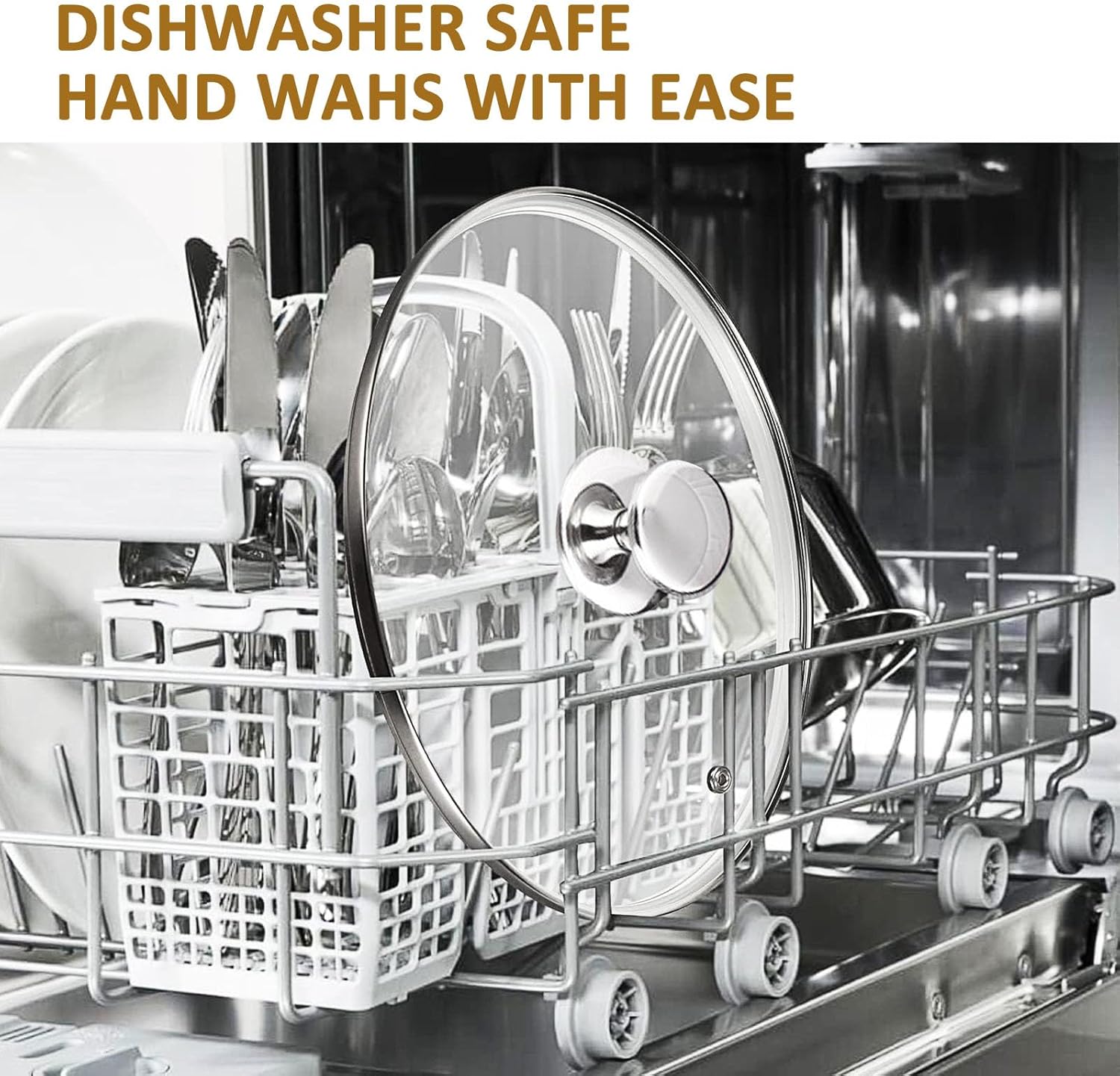 - ✔ TEMPERED GLASS & STAINLESS STEEL RIM – The glass lids are made of tempered glass,strong and durable. The edge of the lid is made with stainless steel material, make sure the safe cooking without rust (Please contact us if any broken during shipping)