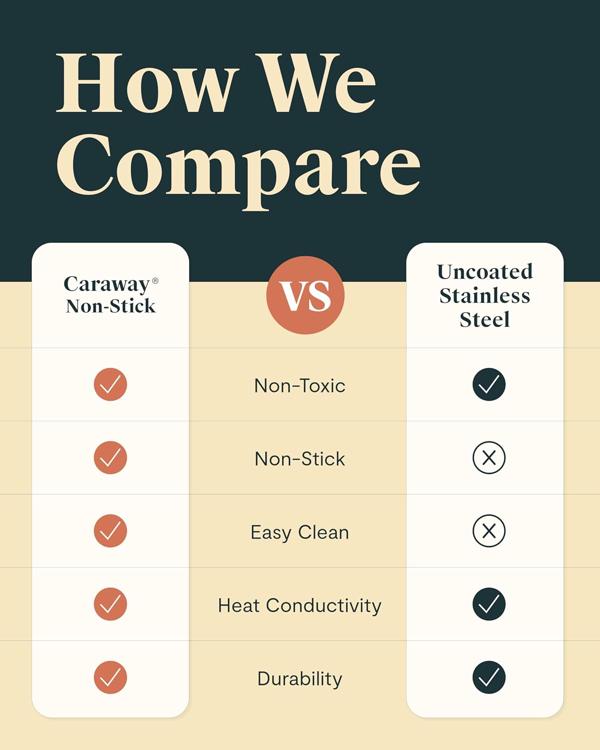 - NON-TOXIC MATERIALS: All Caraway products are free of PTFE, PFOA, PFAS, lead, cadmium and other toxic materials that can leach into your food, making them safe for you, your family, and the environment.
