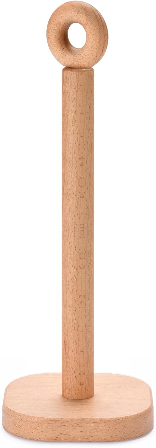 - [Simple and Natural] This cute paper towel holder is with donut top design and made from beech, super cute and beautiful natural wood color, looks attractive on the counter.