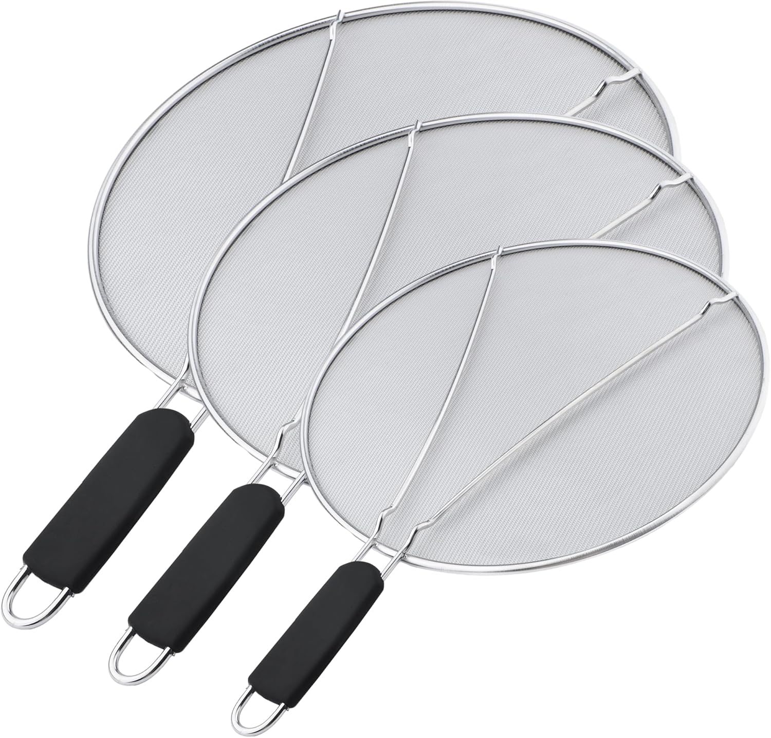 13'', 11.5'', 9.8'' Stainless Steel Grease Splatter Guard for Frying Pan with Comfortable Grip Handle, Ultra Fine Mesh Prevents Oil Splatters and Messes, Heavy Duty Splatter Screen