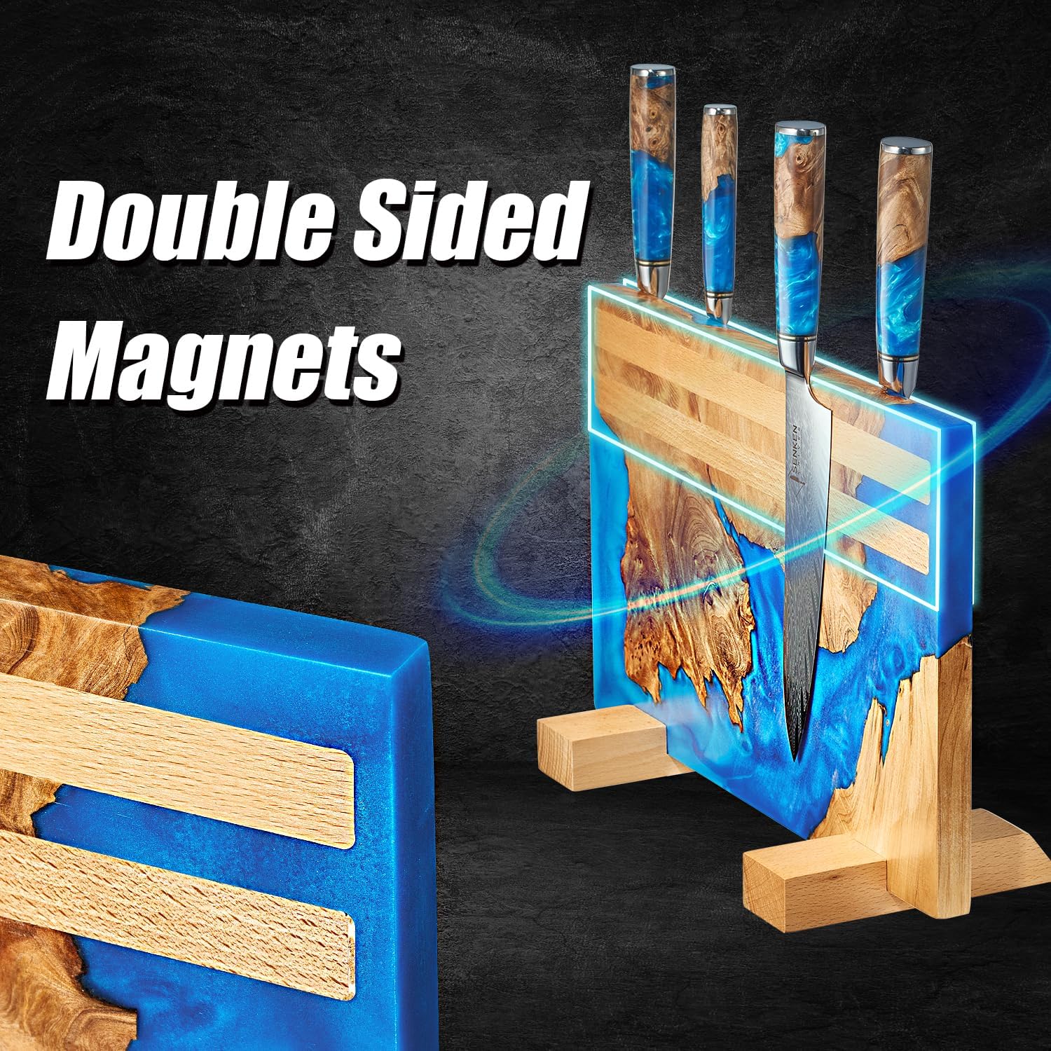- 【 Beautiful Blue Resin Blend 】The "Tsunami" Magnetic Knife Blockknife block is finished with anti-skid felt pads on the bottom, making it safer to use on slippery counter tops than ordinary blocks.