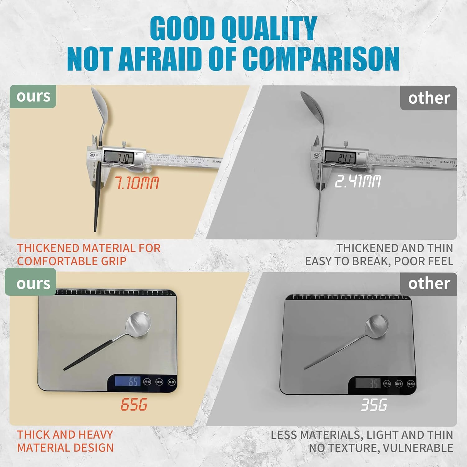 - DURABLE AND SAFE : Crafted from premium stainless steel. Durable and healthy for everyday use. The heavy-duty solid handle is not easy to deform, which is easy to compare with another cheap cutlery set