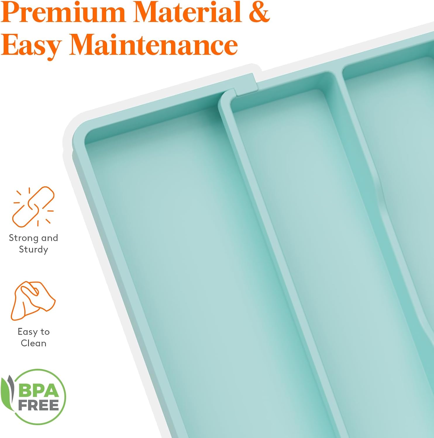 Lifewit Utensil Organizer for Kitchen Drawers, Expandable Cooking Utensil Tray, Adjustable Cutlery Silverware Flatware Holder, Plastic Spatula Tools and Gadgets Storage Divider, Large, Turquoise