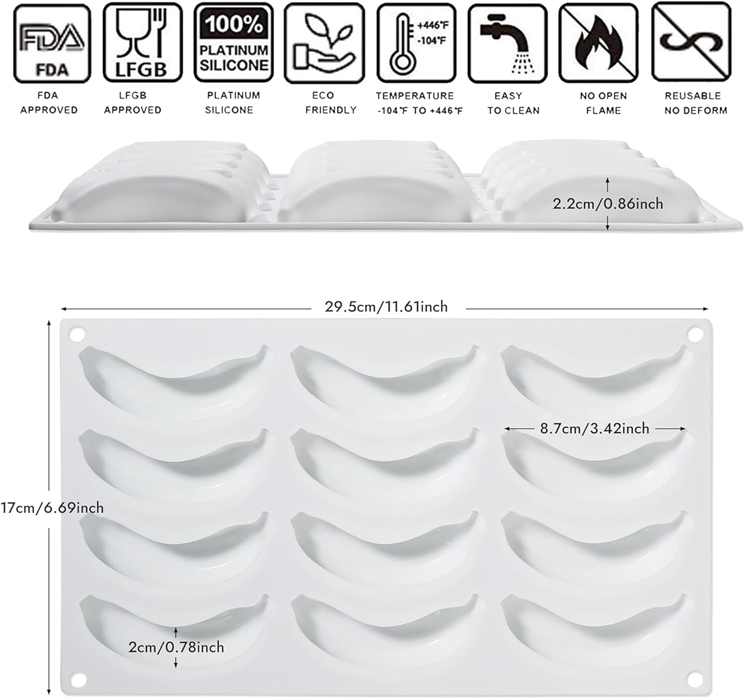- ENJOY COOKING - The 3D banana shape silicone baking mold overall size is 11.61x6.69x0.86 inch. Using multi-cavity silicone cake candy chocolate molds make your cooking easier