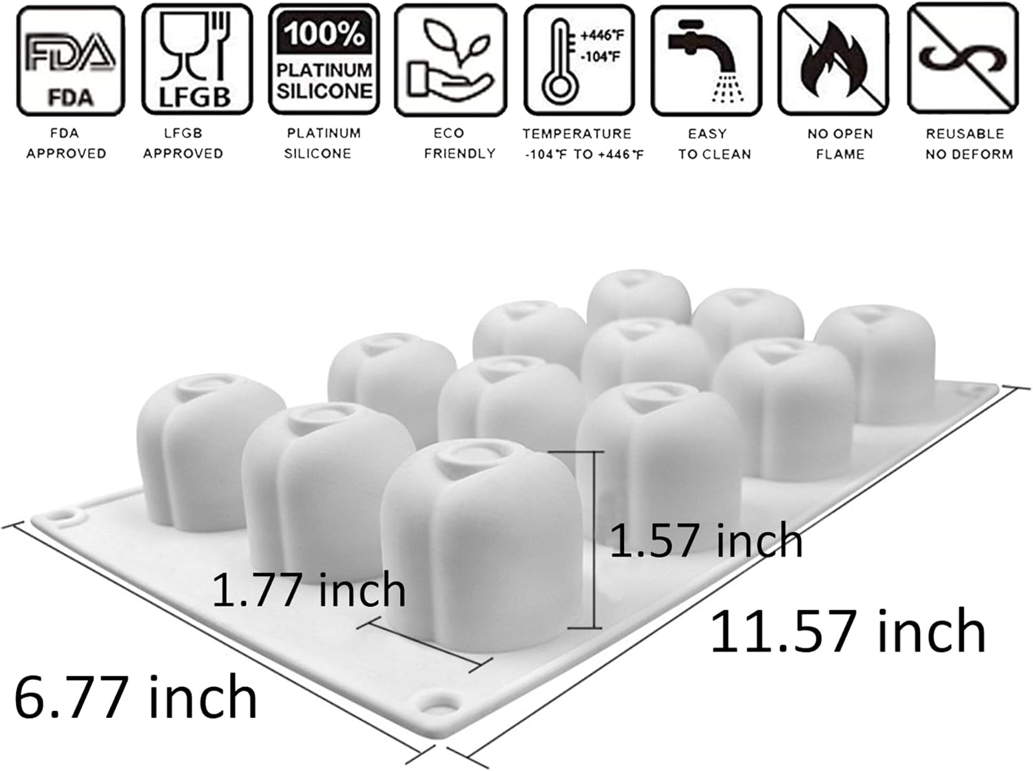 - ENJOY COOKING - The 3D Cherry shape silicone baking mold overall size is 11.57x6.77x1.77 inch, each cavity mold size is 1.77x1.57 inch. Using multi-cavity silicone cake candy chocolate molds make your cooking easier