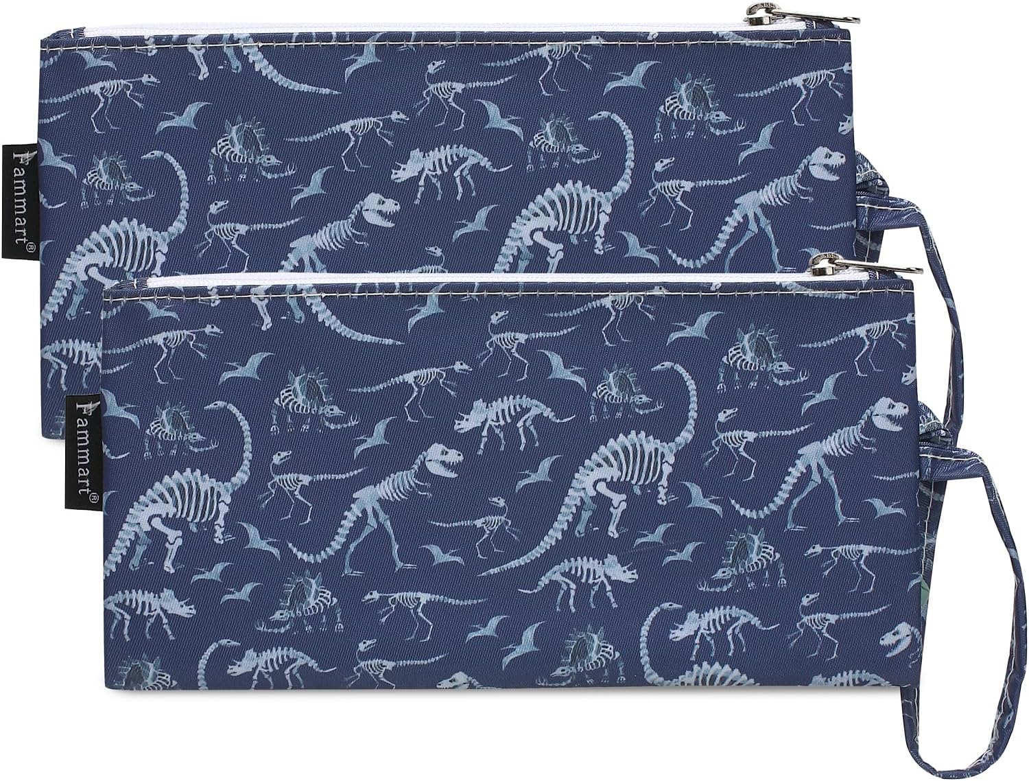 Reusable Sandwich Bag/Snack Bag for Kids & Adults, Dual Layer Lunch Bag with Handle, Washable, Food Safe, BPA Free (2-Pack, Dinosaur Fossil)