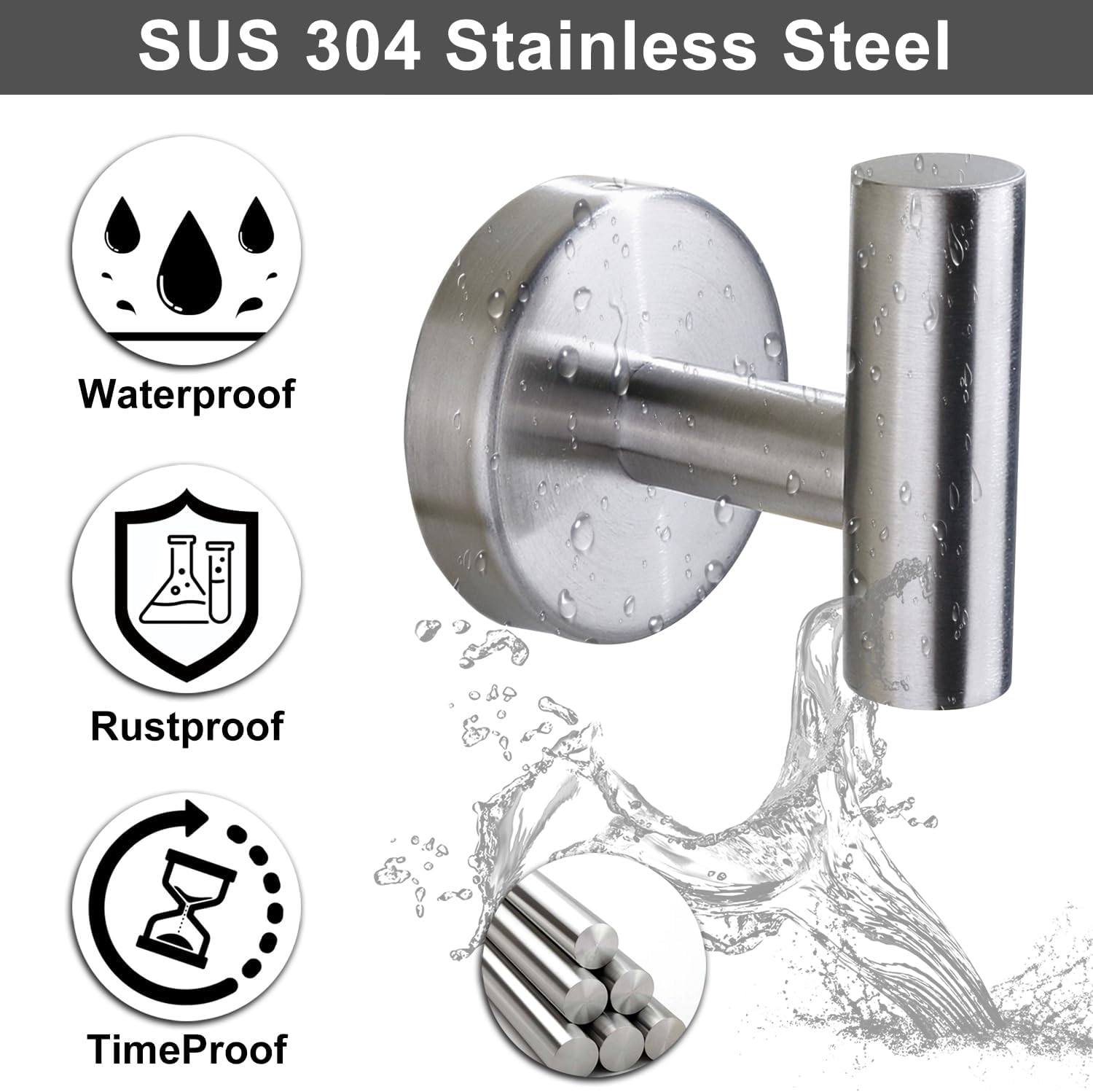 Towel Hook for Bathroom,Screw Mount Heavy Duty Wall Hooks, Stainless Steel Coat Robe Clothes Hook for Bathroom Kitchen Garage Hotel, 2 Packs Wall Mount Towel Holder, Brushed Silver
