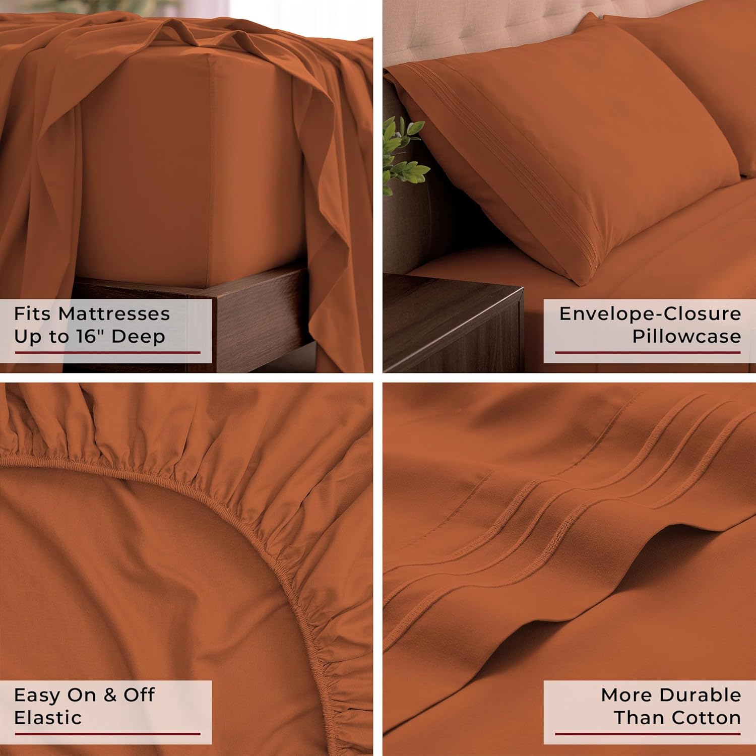 Mellanni California King Sheets Set - 4 PC Iconic Collection Bedding - Hotel Luxury, Extra Soft, Cooling Bed Sheets - Wrinkle, Fade, Stain Resistant (Cal King, Terracotta)