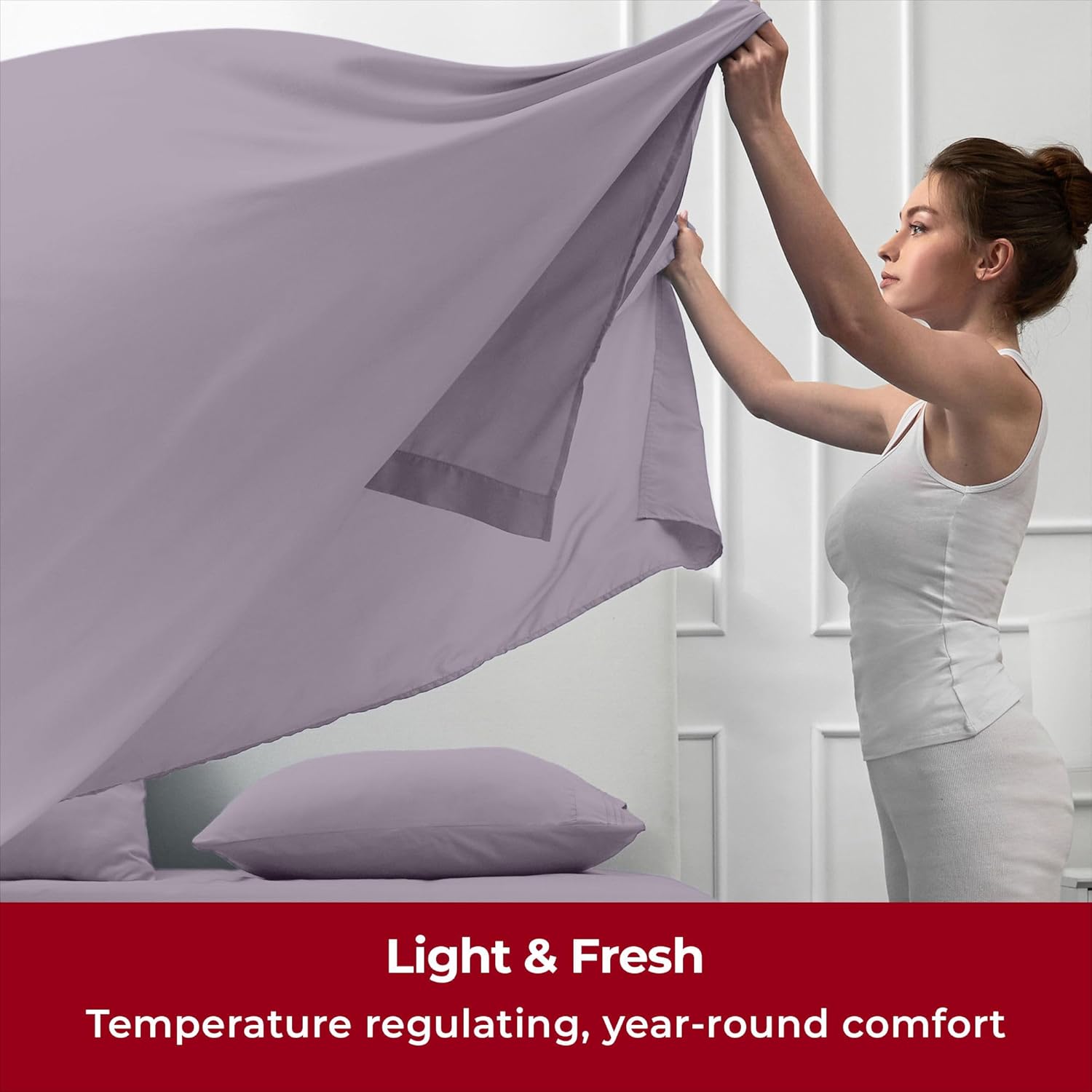 Mellanni Split King Sheets Set - 5 PC Iconic Collection Bedding - Hotel Luxury, Extra Soft, Cooling Bed Sheets - Wrinkle, Fade, Stain Resistant (Split King, Hazy Lilac)