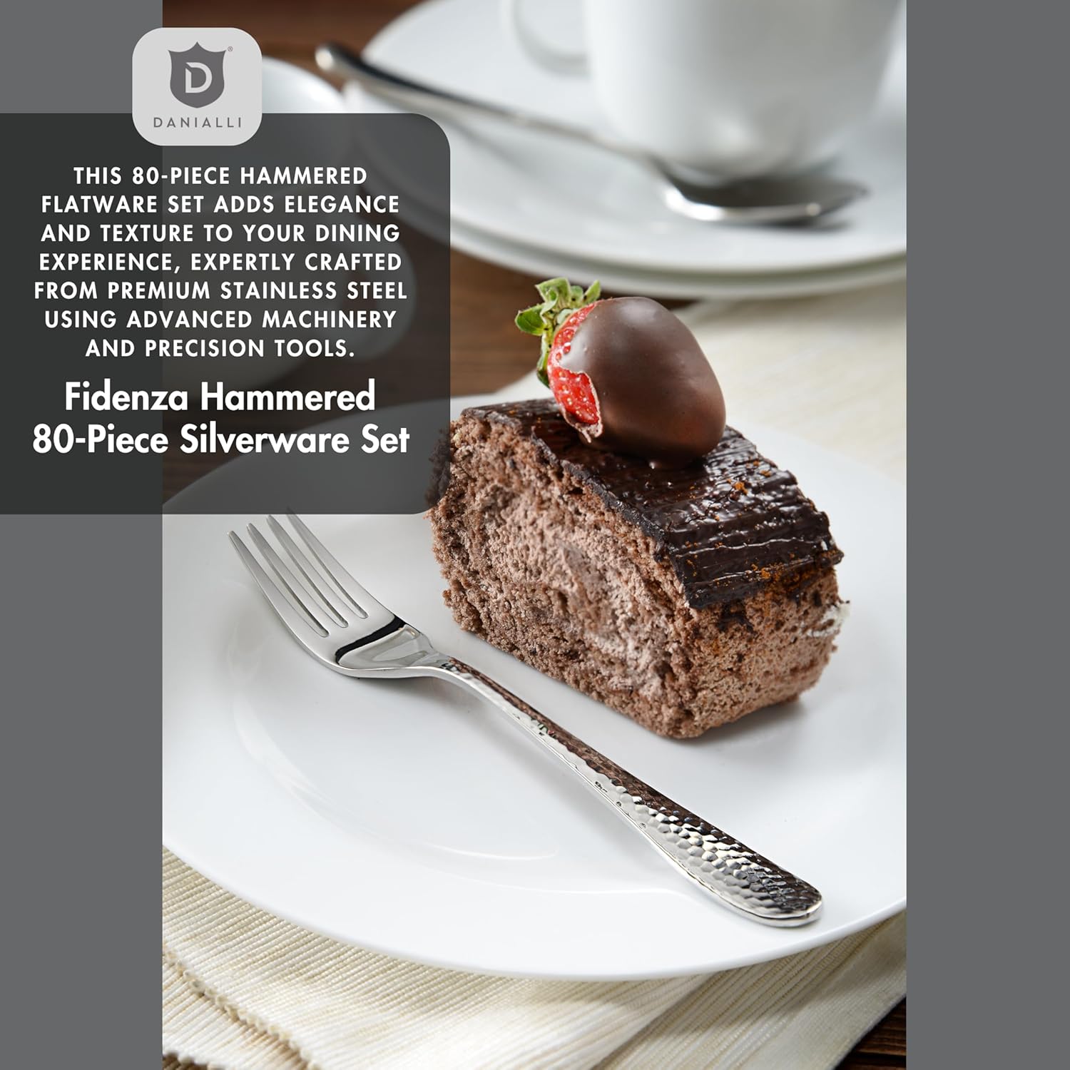 Hammered Silverware Set | Premium 18/10 Stainless Steel Flatware Service for 16 | Heavy-Duty & Dishwasher Safe | Built to Last (80-Piece, Fidenza Hammered)