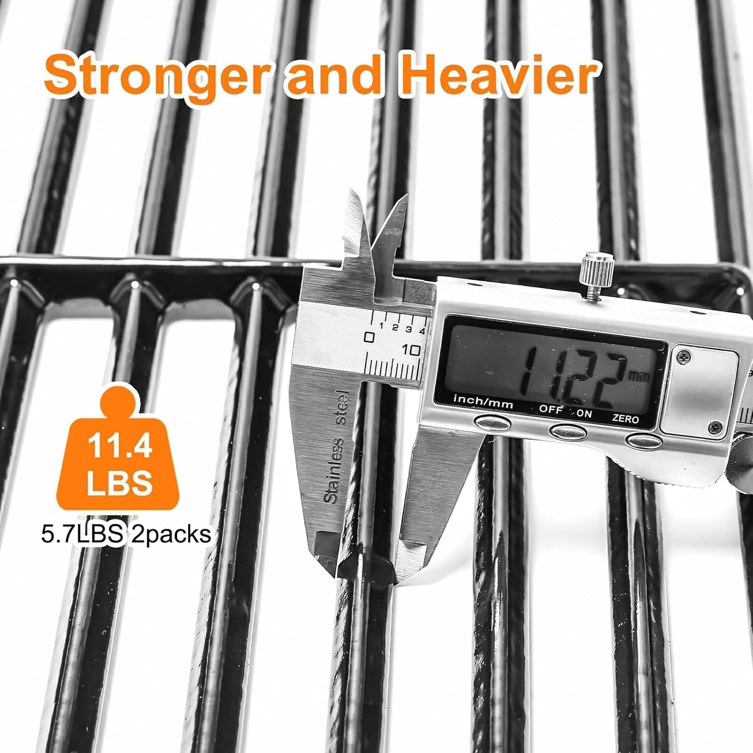 - 【Dimensions & Package】- 17.5'' L x 10.2" W for each grate, 17.5'' L x 20.5" W for 2pcs weber 7637, Weighs 11.4 pounds, heavier than others Weber which weighs only 8-10 pounds