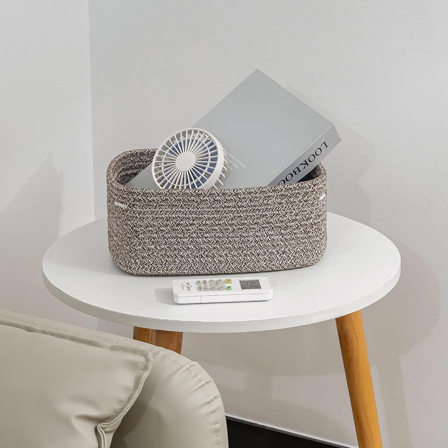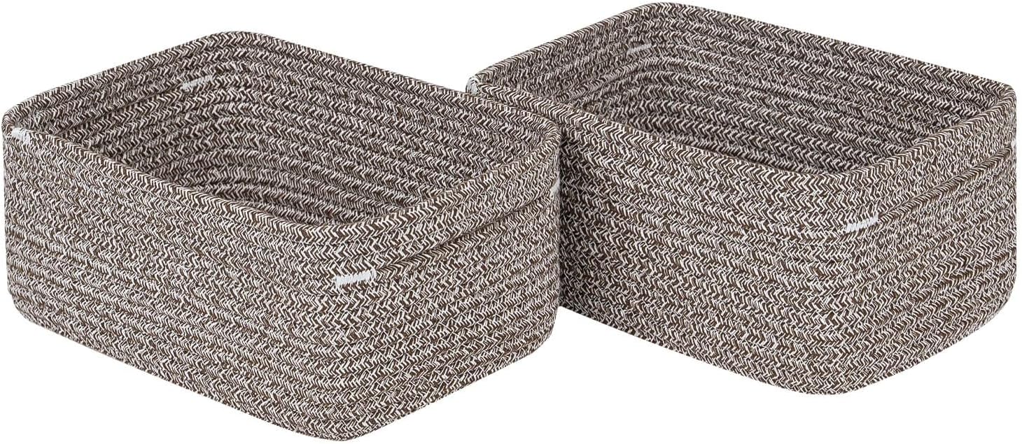 - Classy Natural Cotton Rope Storage Baskets-High quality well made. Very sturdy and a cute modern style. Durable woven rope, Long-lasting, skin-friendly, soft and attractive. You need these adorable baskets to put some supplies in, diaper, jewelry, cosmetics, makeup brushes, tea bags, storing smaller toys, toddler socks, candy