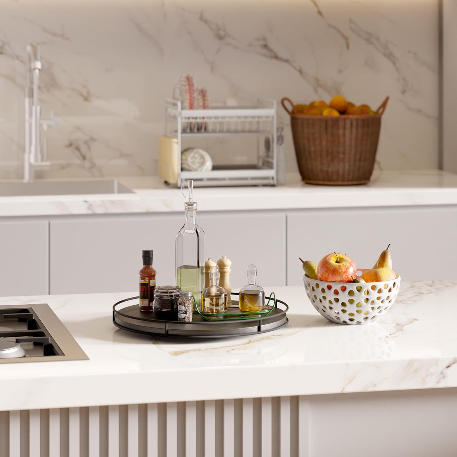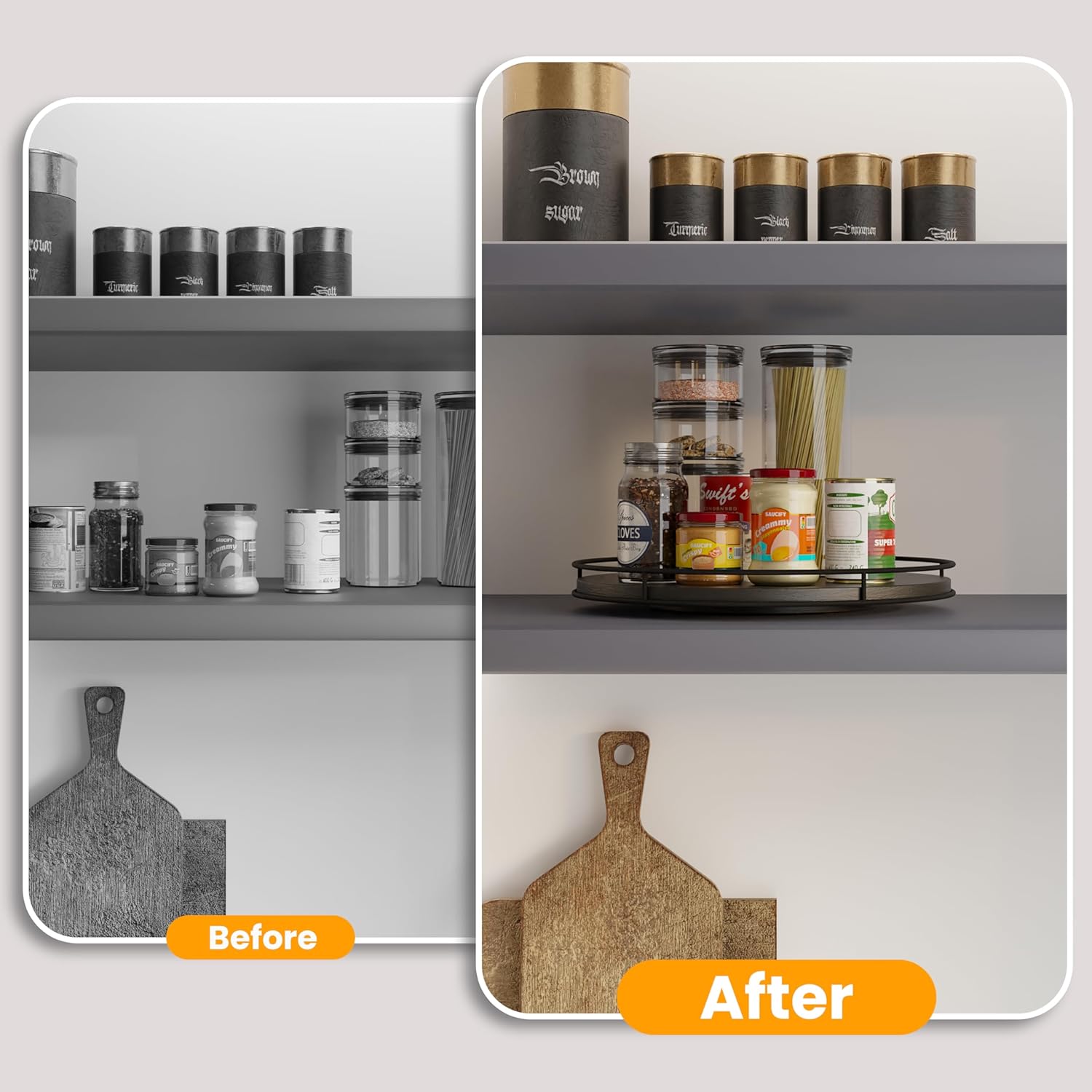- Versatile Storage: The spacious design allows for versatile storage options, accommodating various items such as spices, serving utensils, cheese boards, charcuterie, and more.