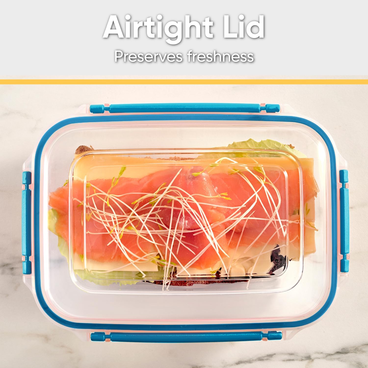 - 100% Airtight and Leakproof- Its leakproof design and air-tight lid prevent food from spilling and moisture loss. It also prevents dry food such as cookies, crackers, cereals, and chips from becoming stale
