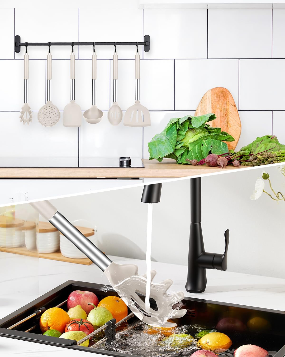 - More Safe and Healthy : Our cooking utensil sets are made of food-grade silicone, free of BPA;Even at high temperatures, there is no need to worry about melting or deforming;And the soft silicone head won't scratch the coating, it can better protect your pot