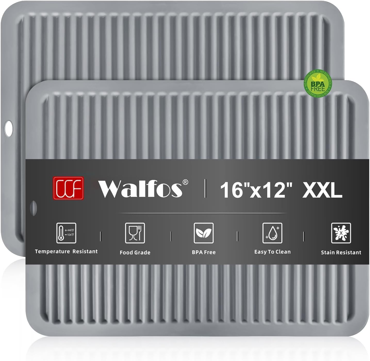 - 16 INCH LARGE SILICONE TRIVET: Walfos extra large trivet allows you to better prevent large hot dishes, pots, appliances, etc. from scalding your countertop, preventing spills and keeping your countertops organized. Made from food-grade silicone, Walfos pot holders are BPA-free and will not attract odors, stain, rust or crack. Size: 16'' x 12'' x 0.22''
