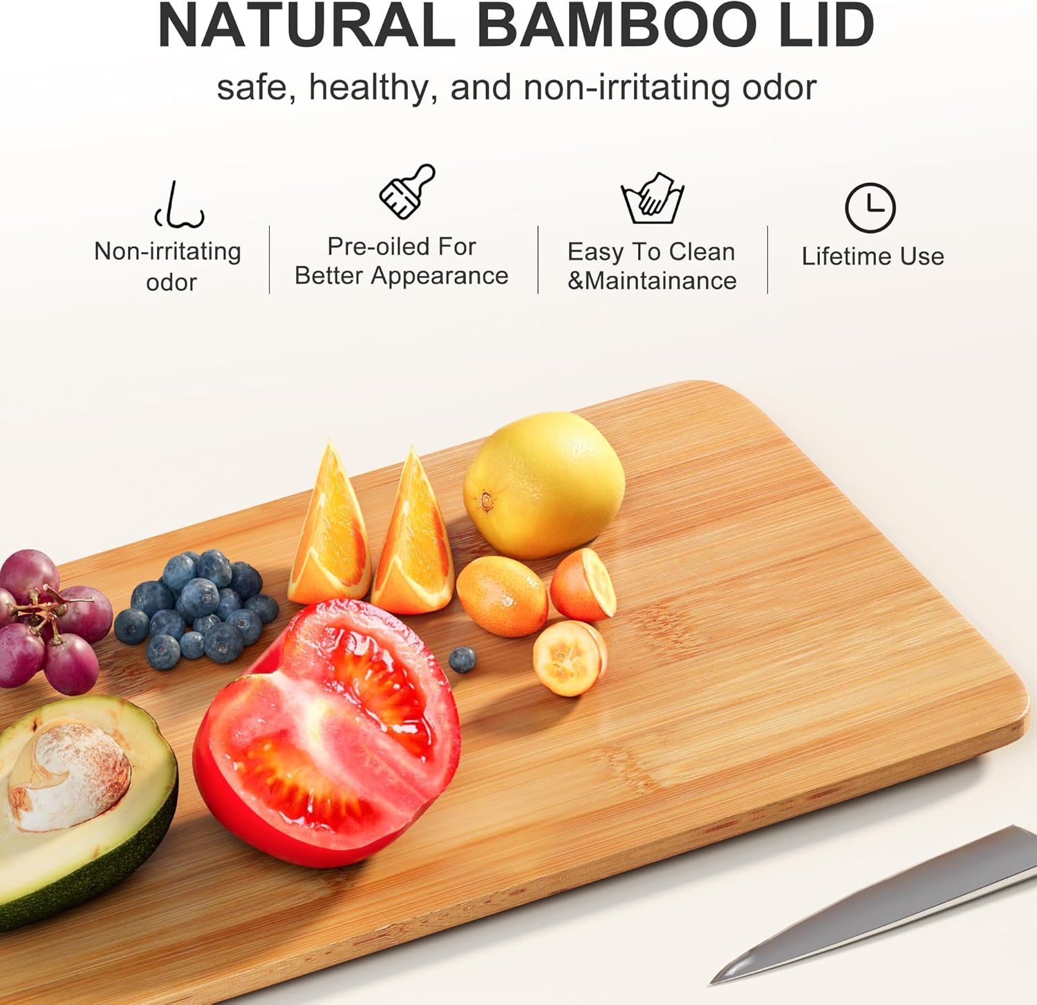 - THICKENED BAMBOO LID - The top is made of 100% natural bamboo, BPA-FREE. Vegetable oil coating, non-irritating scent, and food-safe for direct contact with edibles.