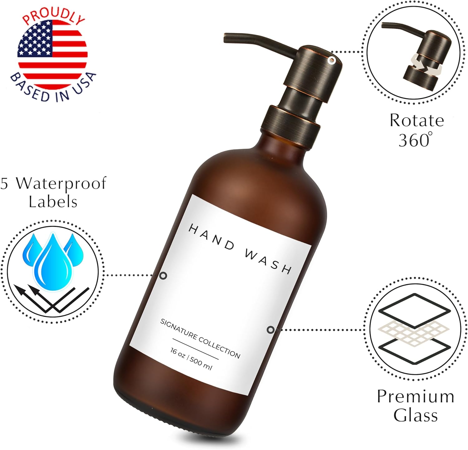 - ✅ U.S.A. BENEFITS: We love and take pride in our glass soap dispensers with pumps. Our dish soap hand soap dispenser set comes with a 10-year warranty and we are proudly based in the USA. If you’re at all unsatisfied with your dish and hand soap dispenser set, please contact us and we will resolve the issue.