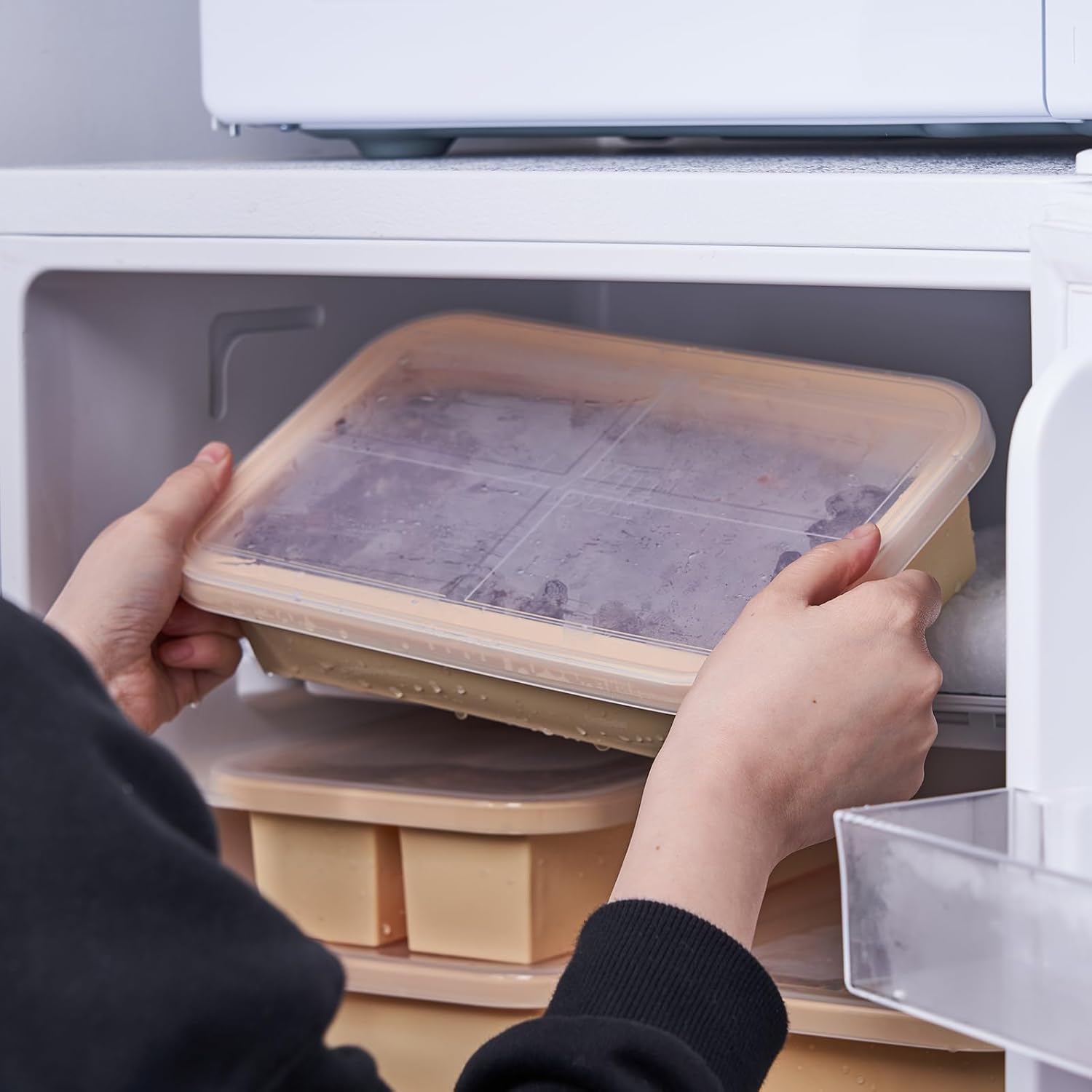 - DURABLE TRAY and TIGHT-FITTING LIDS: Made of tough, within a steel reinforced ring in the top, to make the tray sturdy and not deformation. The custom-fit transparent lids help seal in freshness, avoid spills and freezer odors. They are suitable for any liquids, soup, sauce, broth or leftovers. The trays are stackable for more efficient storage.