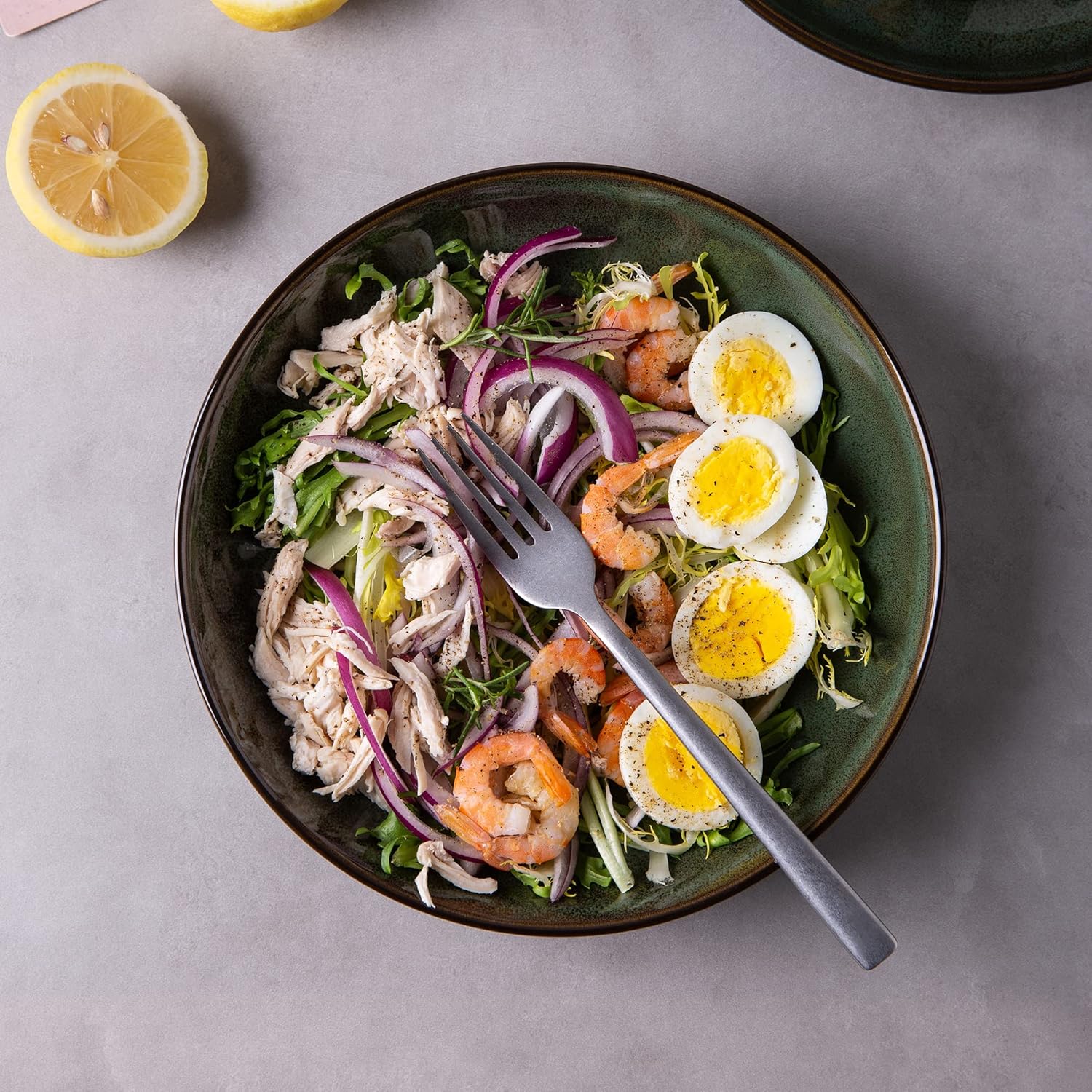 - 【UNIQUE AND SCRATCH RESISTANT】 Our bowls sets are fired with two different glazes,The reactive glaze make every plate is unique,Since our glaze is all-natural reactive finish, the surface of plates would change color on lighting,So Our glaze is also extra strong to prevent scratches from your knives and forks.