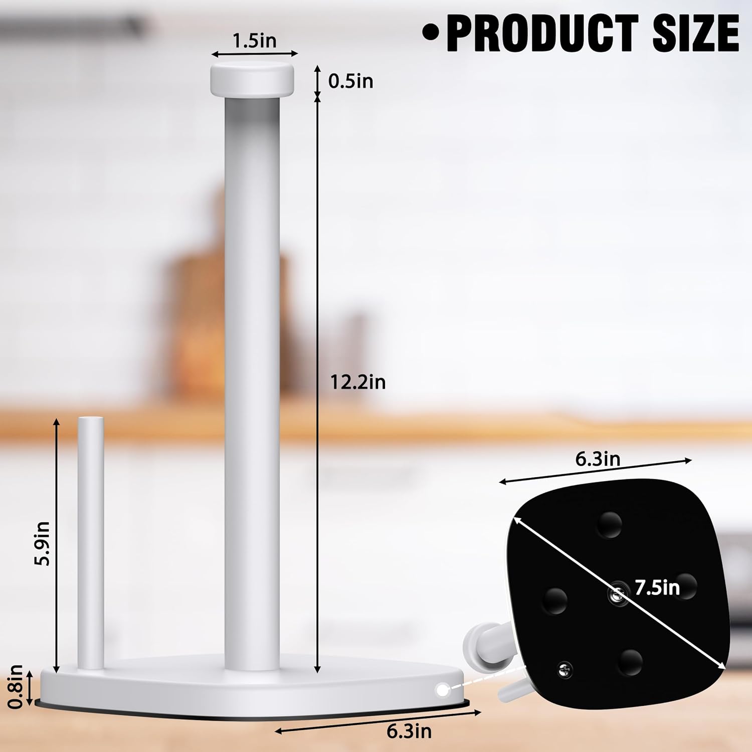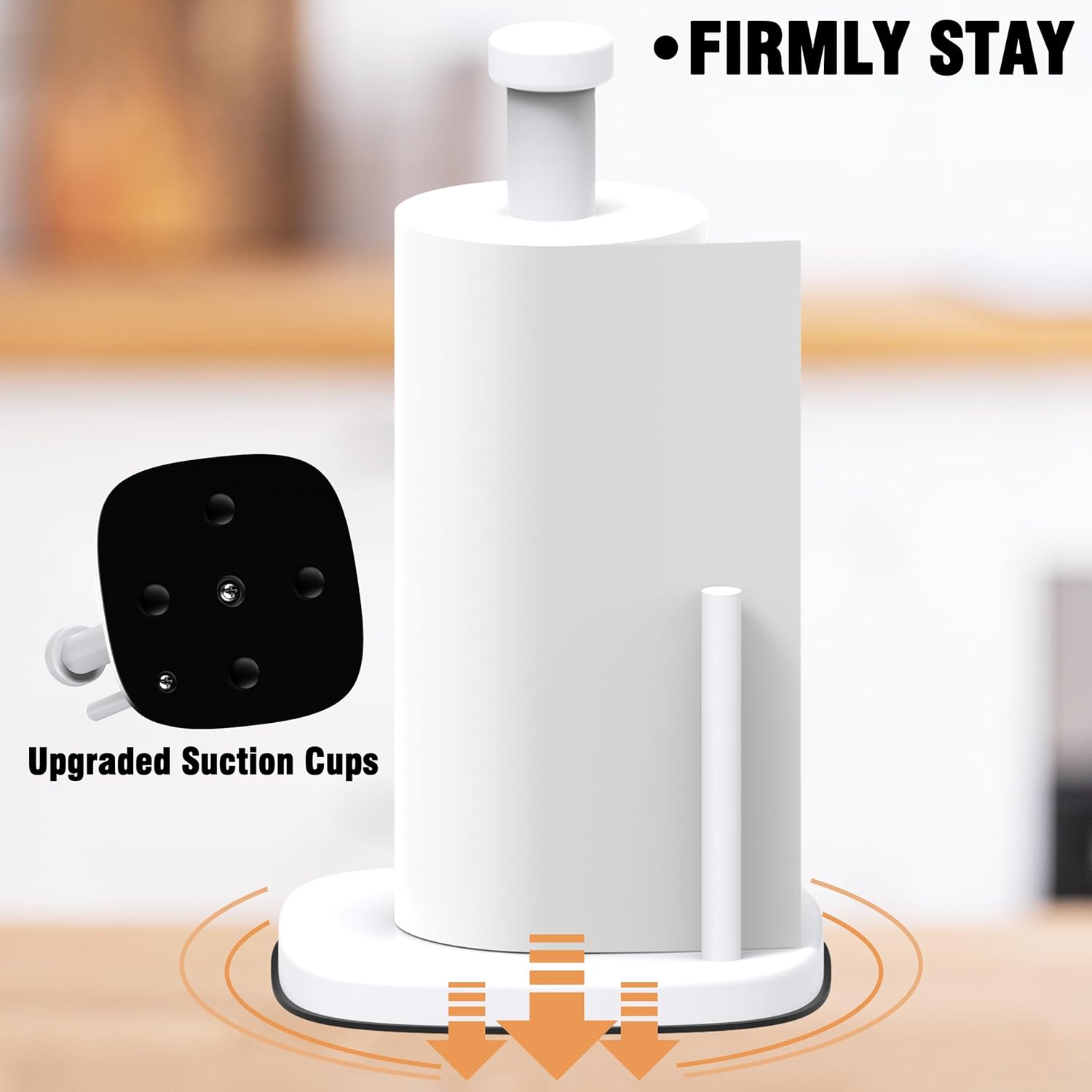 Paper Towel Holder Countertop, Standing Paper Towel Roll Holder for Kitchen Bathroom Organize, Stand with Weighted Base Suction Cups, Stainless Steel One-Handed Operation (White)