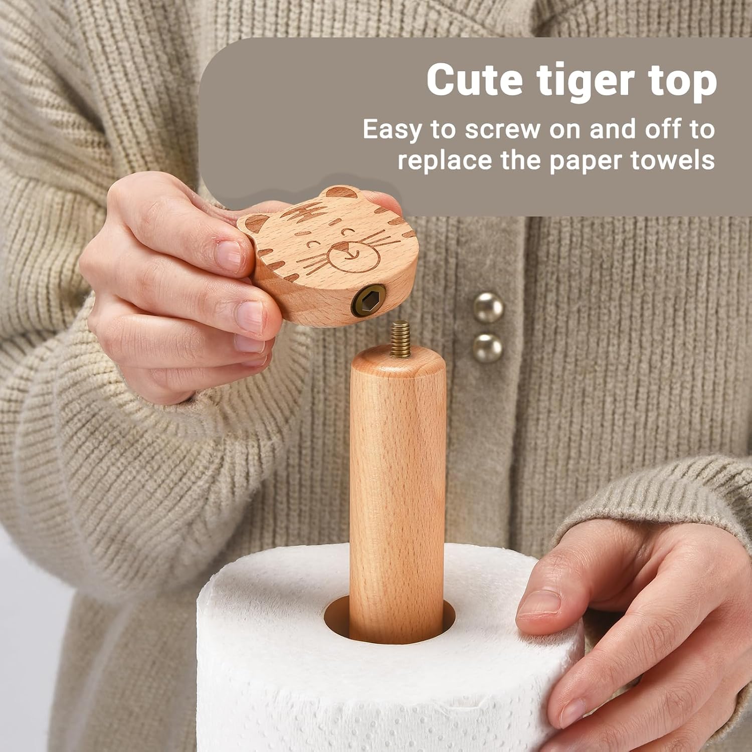 Paper Towel Holder, Cute Tiger Wooden Kitchen Roll Stand Organizer Countertop Free Standing, Housewarming Gift New Home