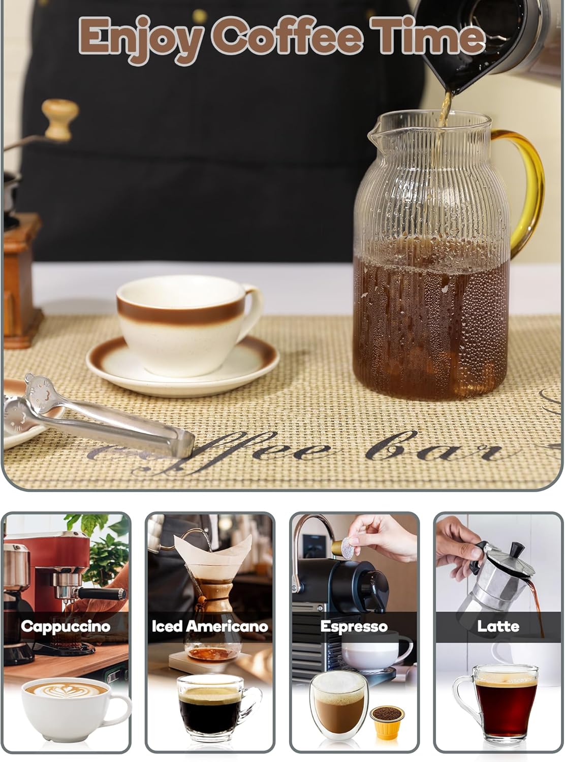 - Noise-dampening & Heat-resistant - Our coffee bar mat is 1/6" thick, which can effectively cushion coffee machine noise and reduce clinking sounds as cups touch the tabletop, ensuring you a tranquil and pleasant coffee experience. Additionally, it provides ample protection for your countertop, effectively shielding it from the heat of boiling water.