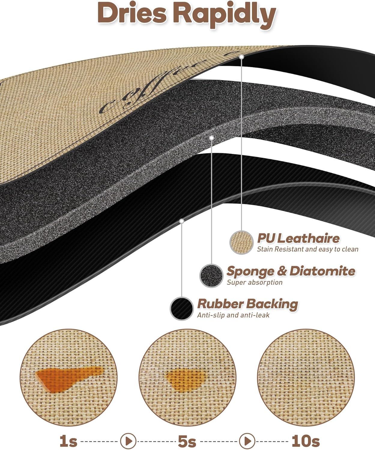 SUEH DESIGN Coffee Mat, Absorbent Dish Drying Mat 19.6 x 11.8 in Quick Dry Coffee Mat Large Drying Mats for Kitchen Counter Coffee Bar, Coffee Bar