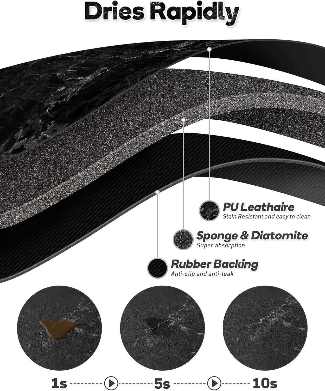 SUEH DESIGN Coffee Mat, Absorbent Dish Drying Mat 19.6 x 11.8 in Quick Dry Coffee Mat Large Drying Mats for Kitchen Counter Coffee Bar, Marble Black