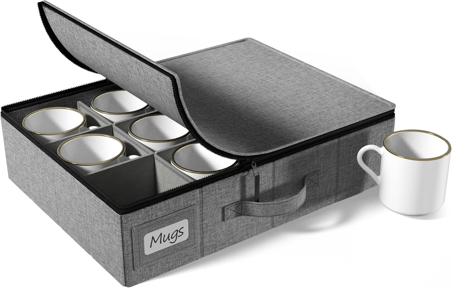 - Coffee Mug and Glass Organizer Storage: Our coffee mug storage box with dividers is designed for coffee enthusiasts, offering a convenient solution for organizing and protecting your coffee mugs and glassware - Holds up to 12 of your favorite mugs - Features label windows, handles, and dividers