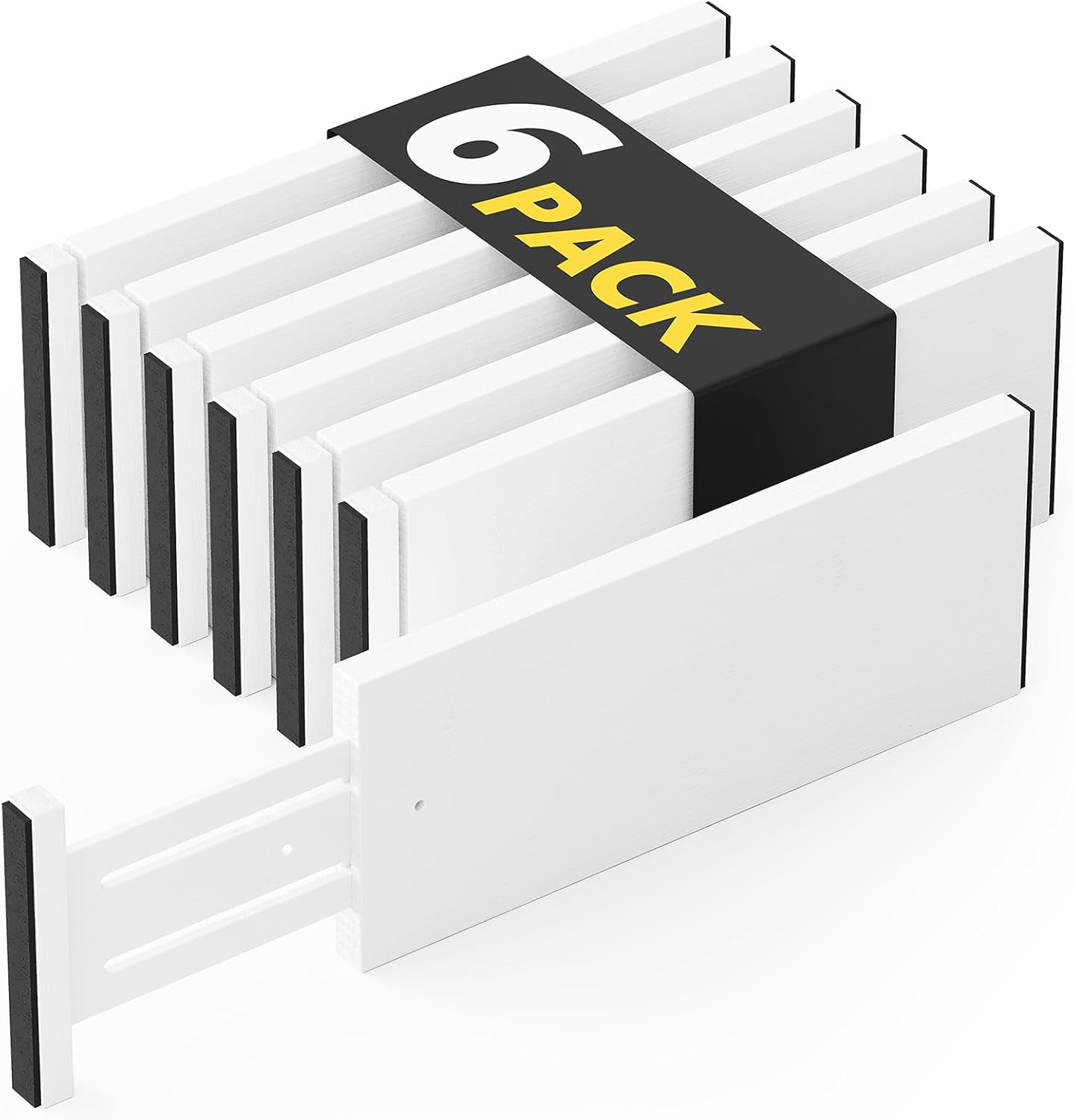 SpaceAid Bamboo Dresser Drawer Dividers 6 Pack, 4.65“ High Adjustable 12.5“-17” Drawer Organizers, Expandable Organization for Clothing, Clothes, Dressers, White